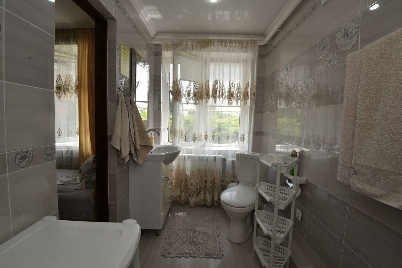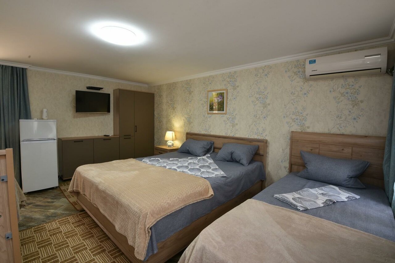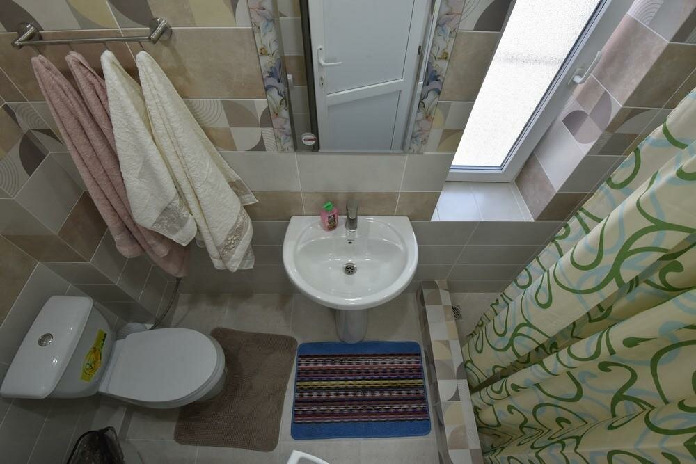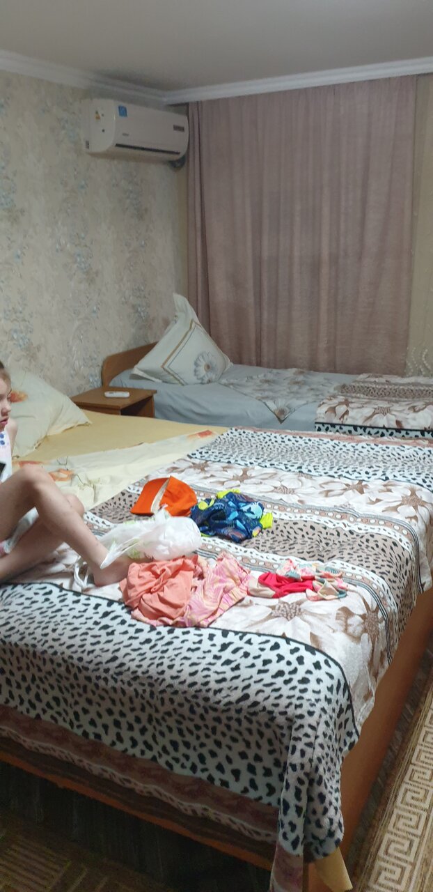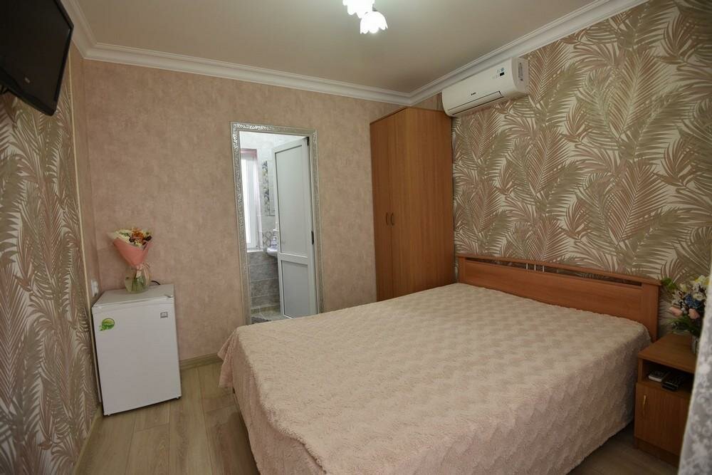 Отдыхали 6 дней, в номере душ и туалет. Есть кондиционер, холодильник , телевизор и шкаф. Хорошие хозяева, внимательные. Во дворе детская площадка, место для отдыха, огромное количество цветов , водопад и место для сушки белья. Кухня оборудована, предоставлен шкафчик для еды, посуды много: кастрюли, сковородки и другая утварь. Всегда чисто и хозяева всегда рядом, не звать и не искать не надо. Приедем ещё. Удобное расположение, до моря 10 минут, рядом магазин Мвгнит.