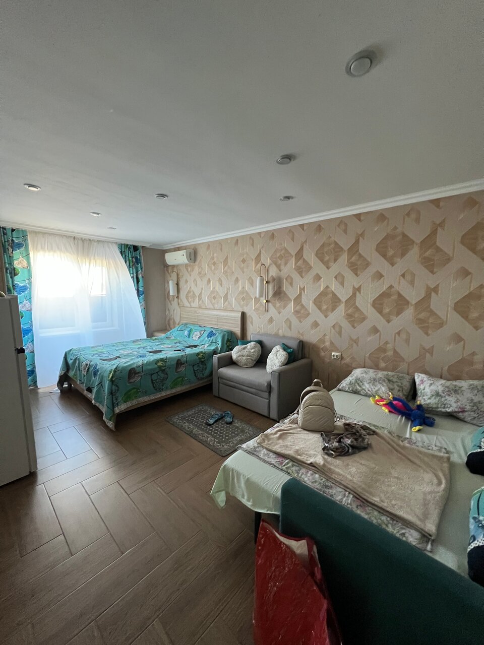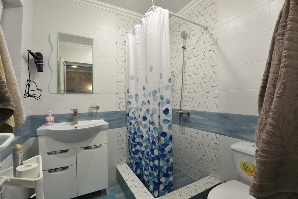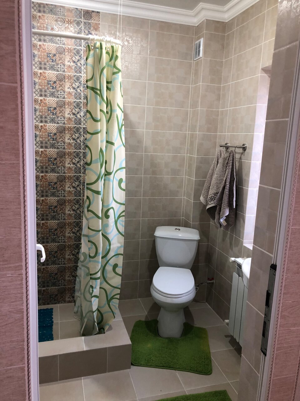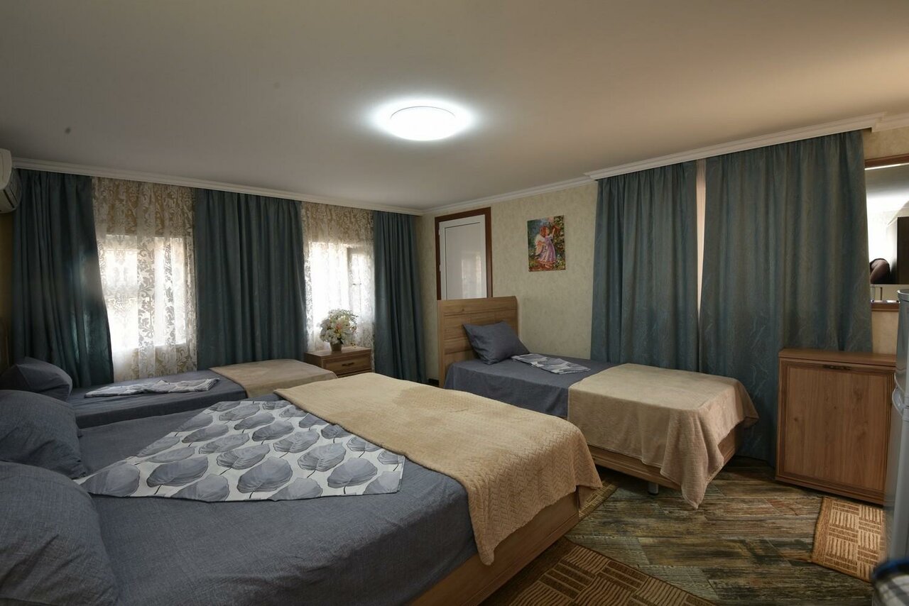 Отдыхали 6 дней, в номере душ и туалет. Есть кондиционер, холодильник , телевизор и шкаф. Хорошие хозяева, внимательные. Во дворе детская площадка, место для отдыха, огромное количество цветов , водопад и место для сушки белья. Кухня оборудована, предоставлен шкафчик для еды, посуды много: кастрюли, сковородки и другая утварь. Всегда чисто и хозяева всегда рядом, не звать и не искать не надо. Приедем ещё. Удобное расположение, до моря 10 минут, рядом магазин Мвгнит.