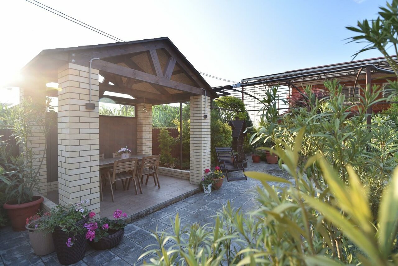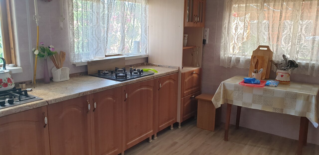Отличный семейный гостевой дом и хозяева очень приветливые, гостеприимные и отзывчивые. Договорились с ними о трансфере, встретили и проводили. Замечательная комната, все удобно и чисто. Общая кухня- вся посуда новая, подобрана наборами. На кухне всегда чистота, все убрано, все наглажено. Это не первый гостевой дом, где мы с ребёнком отдыхали, но это самый лучший, самый уютный, тёплый в плане отношения хозяев к гостям. Отдельно хочется отметить: сад- утопает в многообразии цветов и зелени; детская площадка с беседкой — компактно и все есть; живописный прудик. Море в пяти минутах ходьбы, магнит и аптеки на расстоянии одной — двух минут. Заведений общепита разных много, все близко. Примерно 7 мин — дельфинарий, причём очень стоящее представление. И рядом зоопарк, где есть контактная зона с кроликами, морскими свинками, козами и черепахой. Наверное это единственный гостевой дом, куда я с радостью приеду с дочкой ещё и ещё раз. 10 из 10 по всем параметрам!