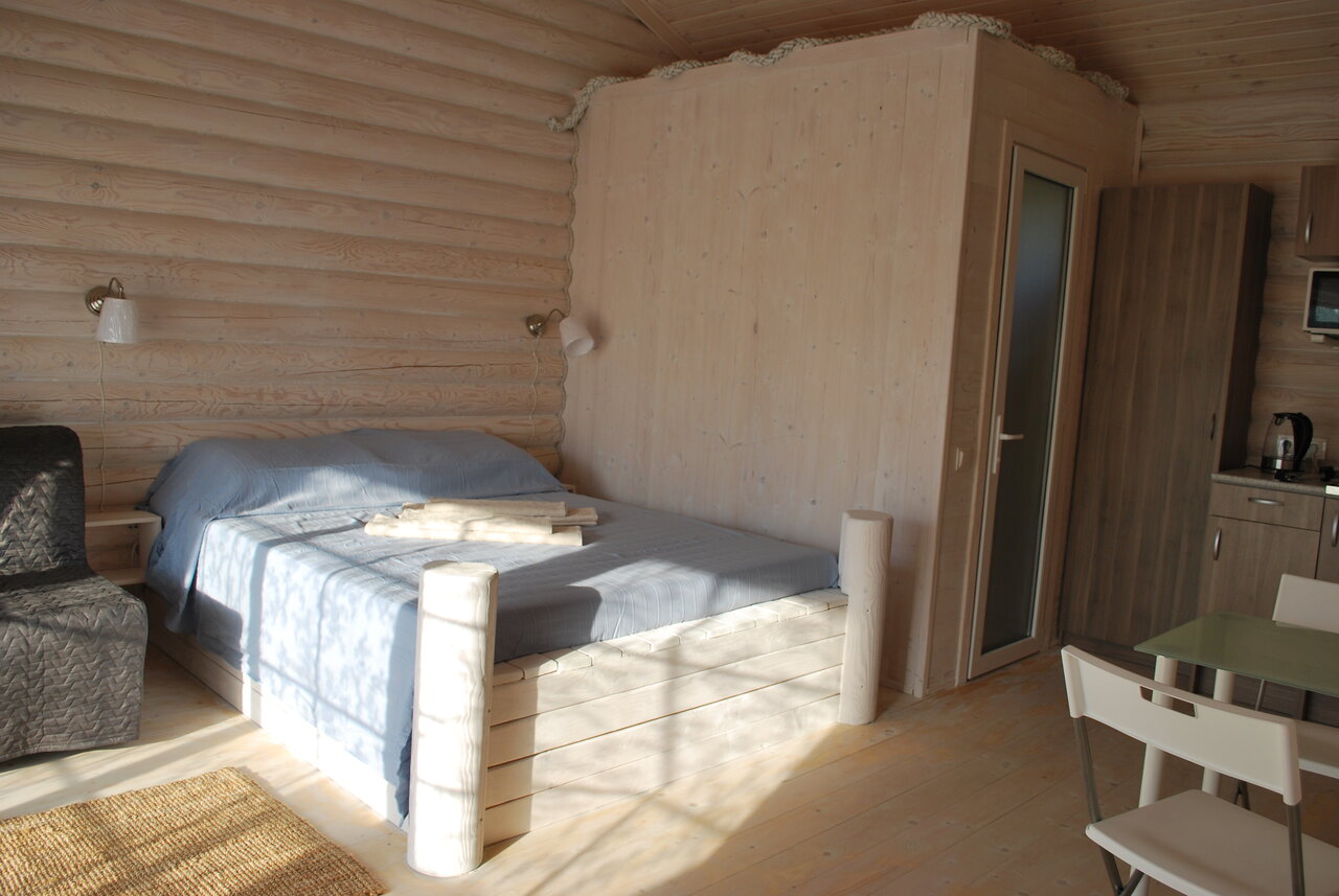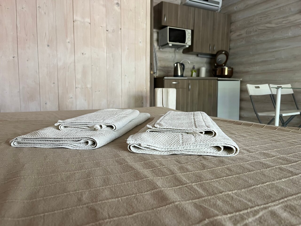 - Хорошее оснащение (кондиционер, мультиварка, яйцеварка, холодильник, телевизор).; Стильные и удобные домики с качественной мебелью.; Выход прямо к морю.; Чистота и порядок на территории.; Смена белья раз в 3 дня.