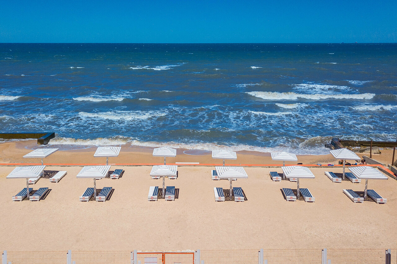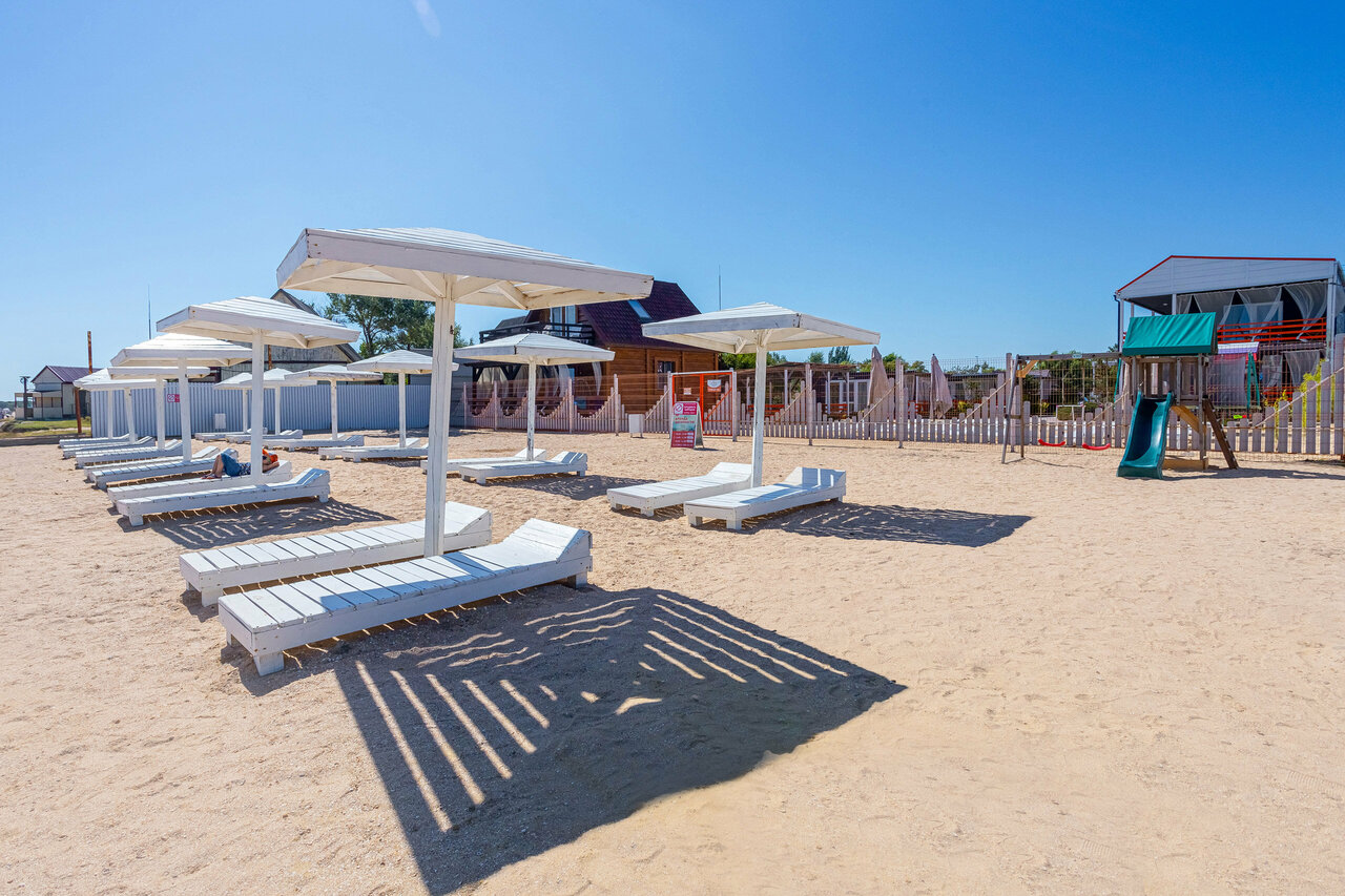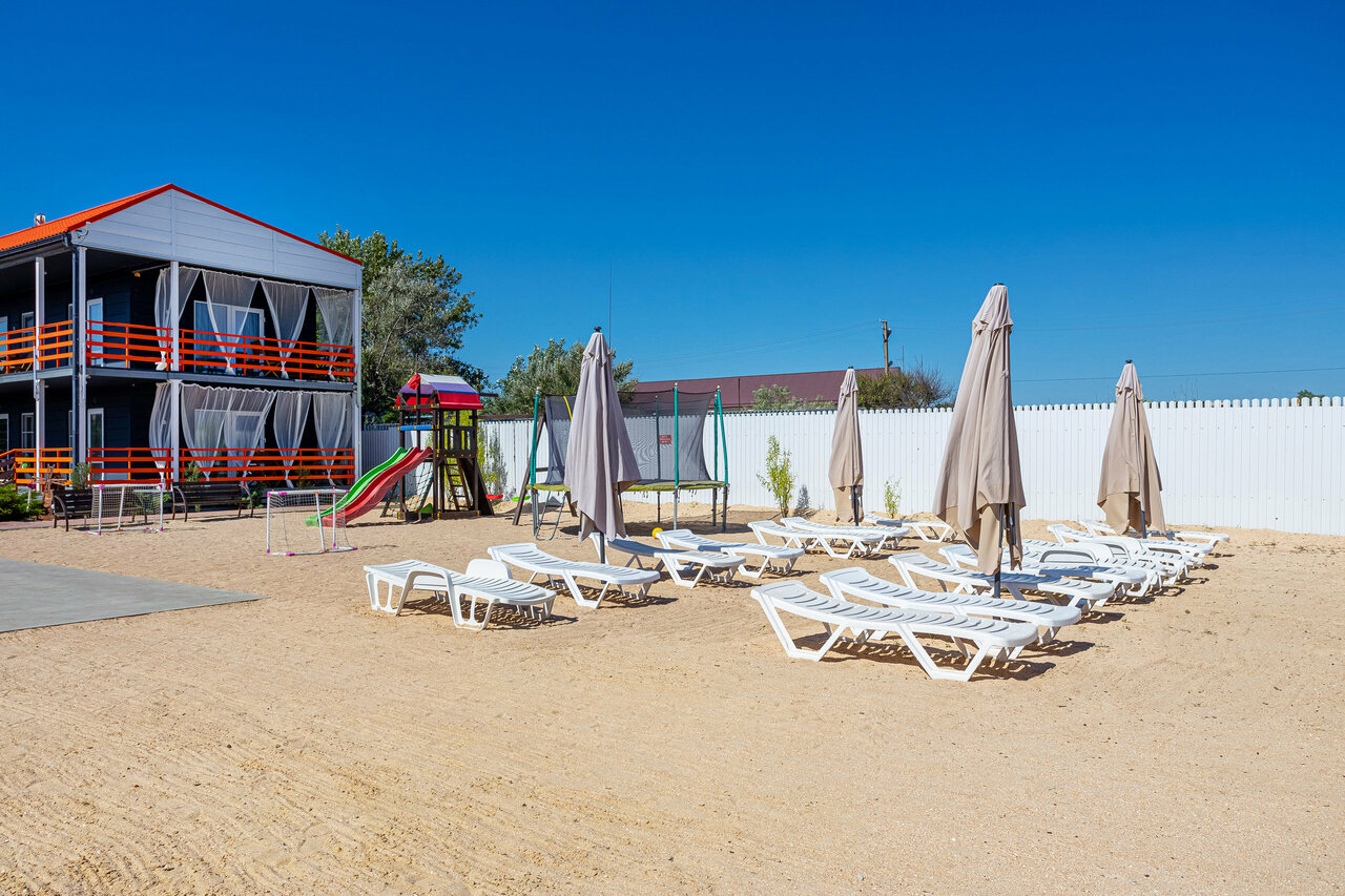 - Собственный пляж с шезлонгами.