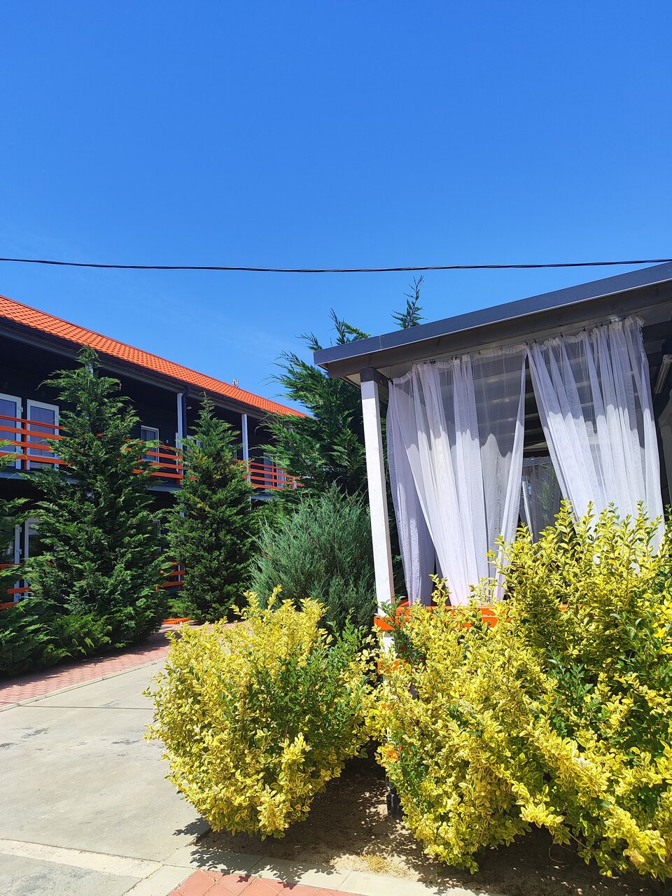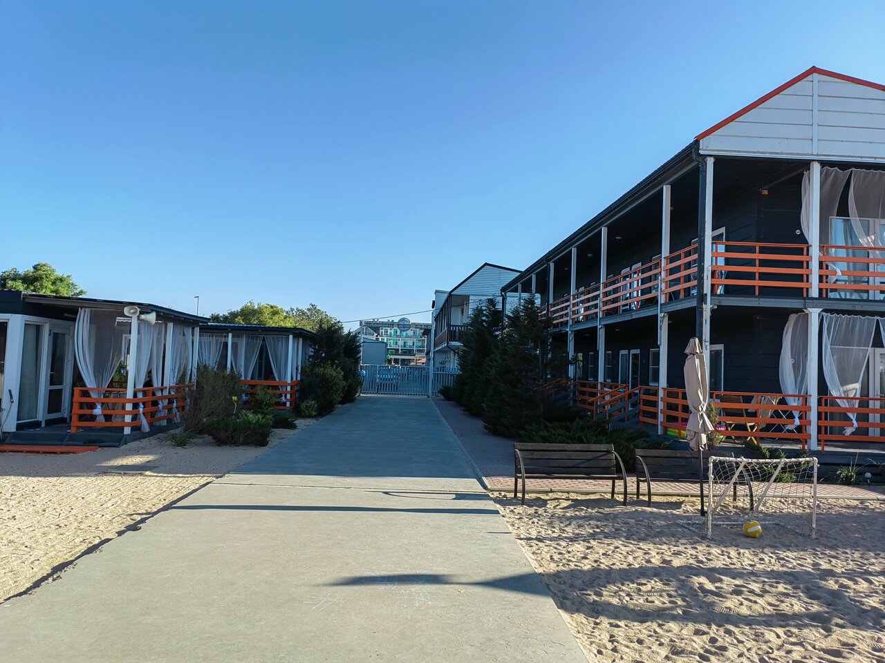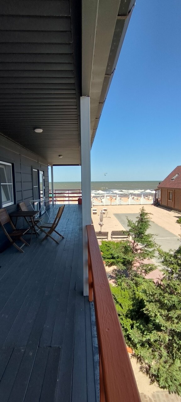 Все очень понравилось. Персонал вежливый и отзывчивый. Понравилось территория отеля (чисто, уютно, комфортно а так же из плюсов есть зона барбекю со столиками под крышей. Собственный пляж (с лежаками проблем не было). Пляж приятный вода тёплая чистая. Бесплатная закрытая стоянка. Всё было супер но единственное что не хватало бассейна… На детской площадке можно сделать бассейн и отель будет просто бомба)