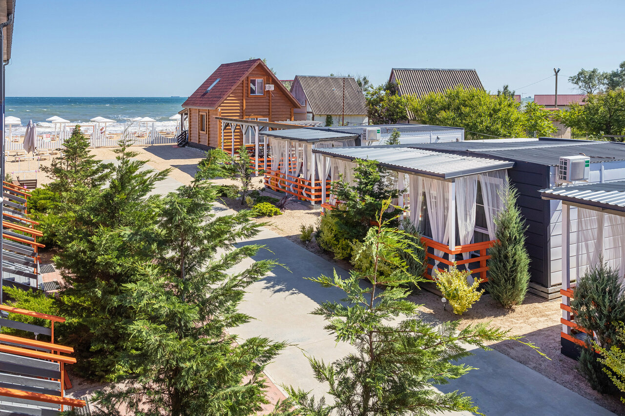 Первый раз на Азовском море, впечатления самые наилучшие , приветливо встретили, заселили гораздо раньше нашего времени. У нас был 4х местный домик с террасой . Кушать лучше все везти с собой , кафе недалеко сомнительные, ближайший магнит мин 15 пешком . Тихо уютно на территории, пляж в шаговой доступности в любое время. Повезло на медуз не попали, море теплое , но понятно грязноватое.