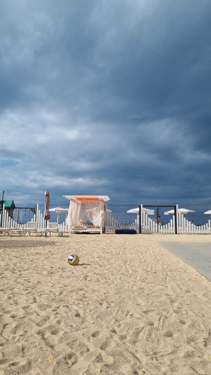 Были в сентябре 22го года. От моря 25 метров, новая, хорошее обслуживание, все чисто, быстрый интернет, детская площадка. Пляж на троечку. Вокруг дешманские шашлычки, и детские карусели по безумным ценам. Рядом бассейн с подогревом. Один раз можно съездить, точно жалеть не будете. Есть парковка.