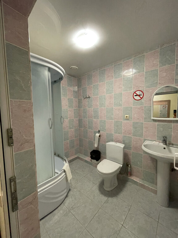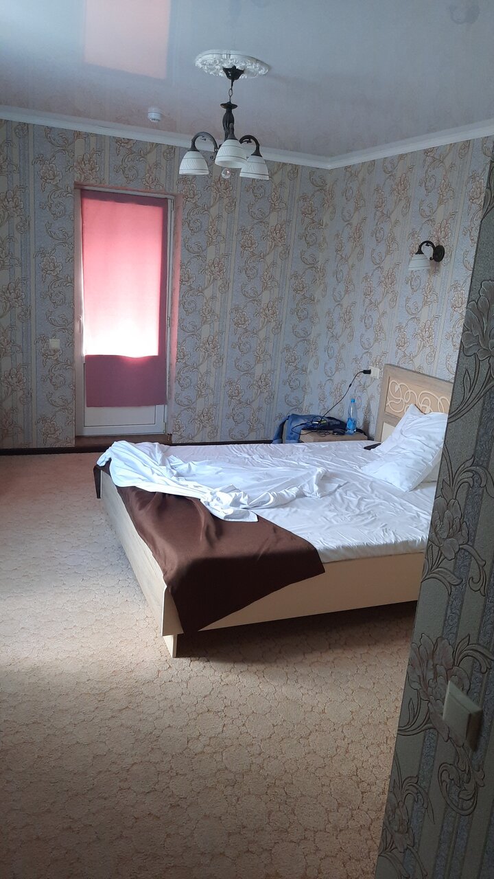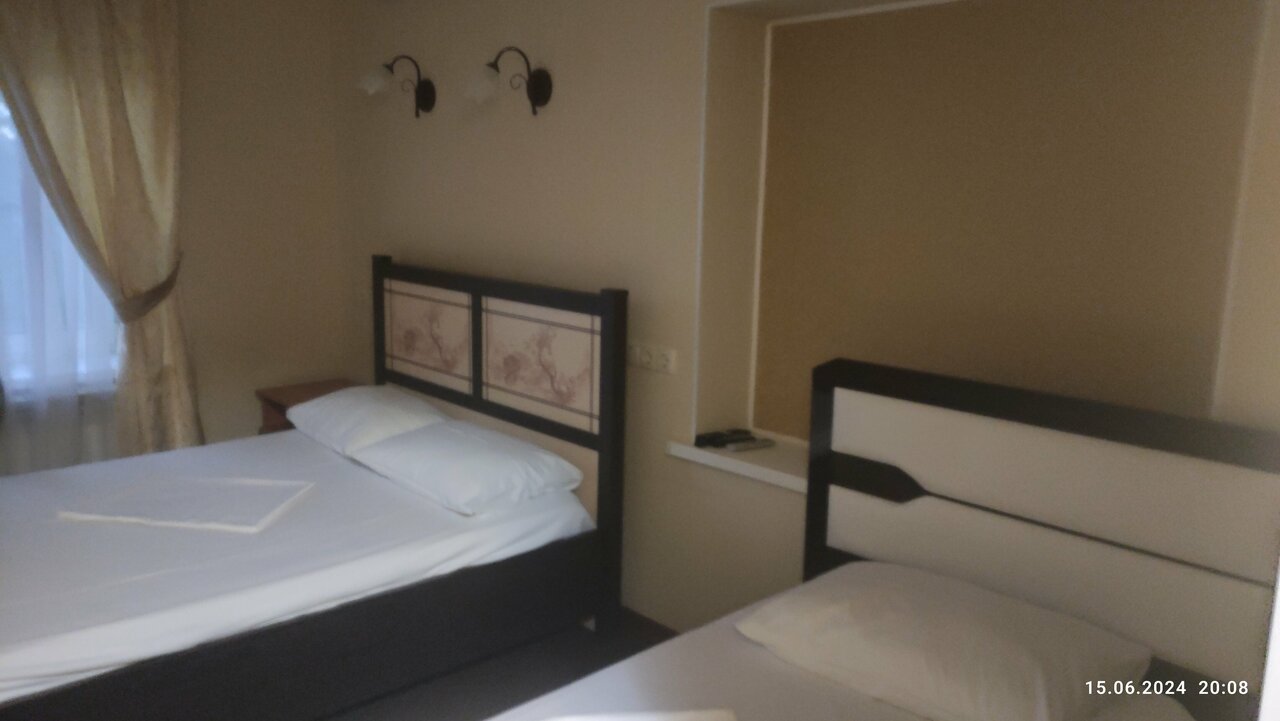 Остановились на ночь. Сток в душе не работал. Забился сразу. Номер заказывали 2ух комнатный. Матрасы давили в спину. Занавесок нет. Постель чистая. И это единственный плюс.