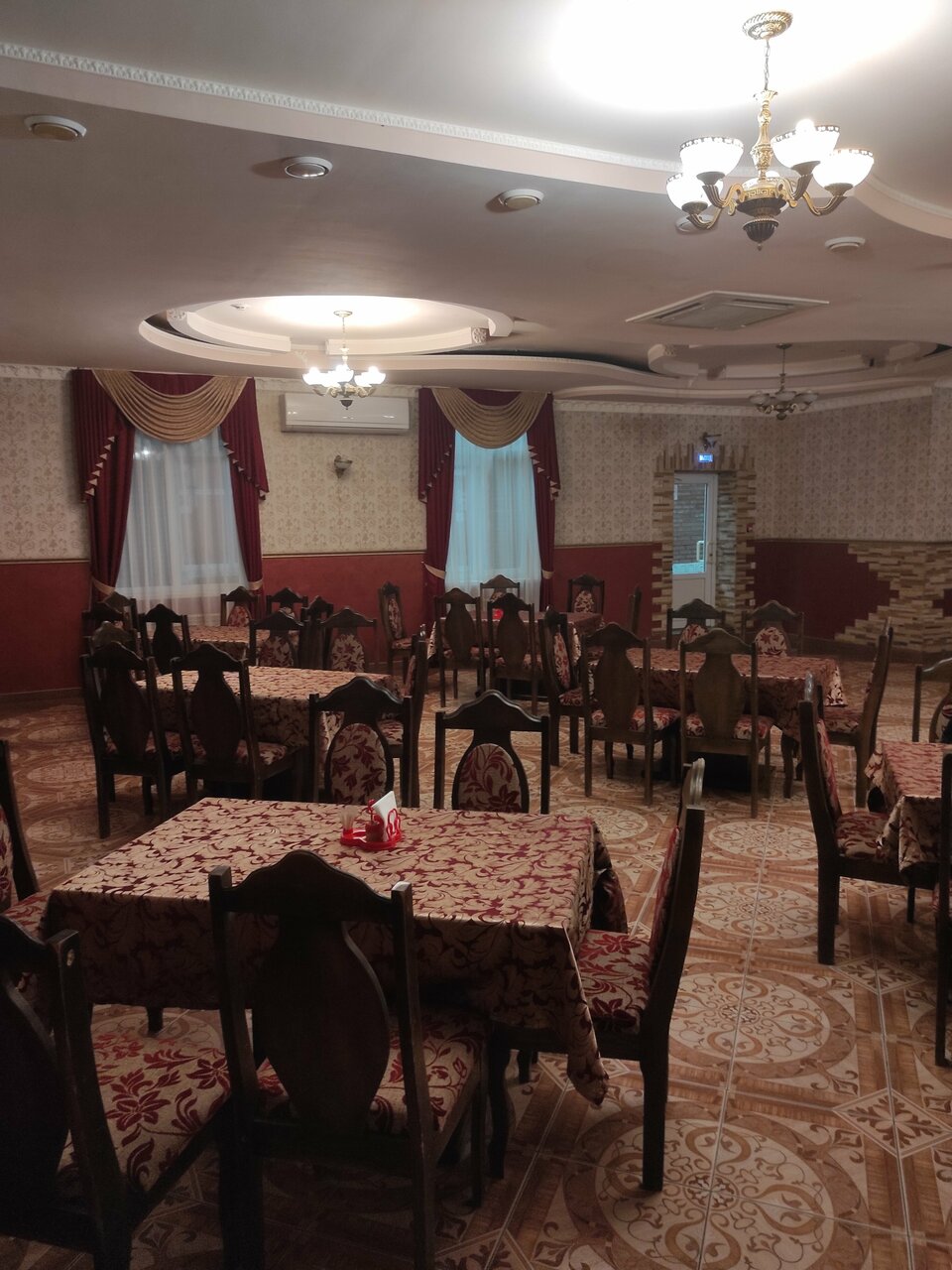 Ночевали одну ночь по дороге. От трассы недалеко, место тихое. Правда кондиционер из номера напротив работал шумно, но наушники и беруши проблему решили. В номере чисто, кипельно-белое постельное белье, матрас удобный. Приехали вечером, на ужин предложили люля-кебаб и пюре картофельное, было вкусно.