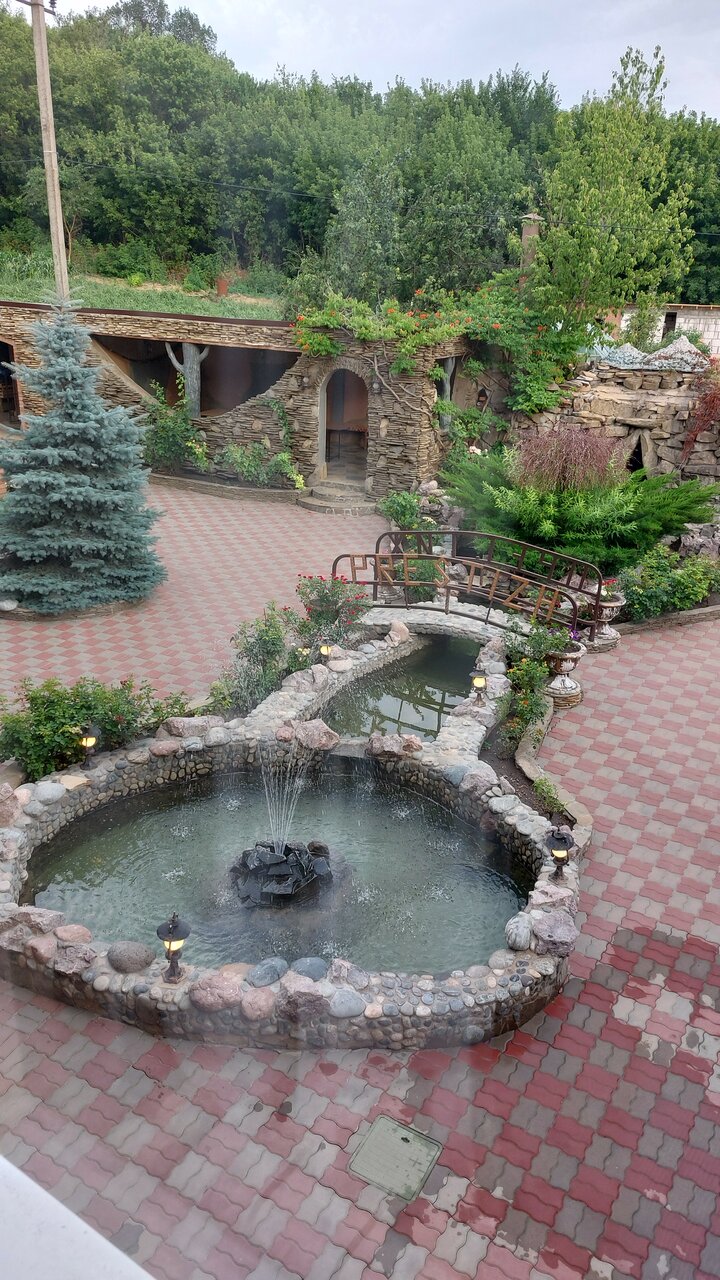 Из плюсов:отдаленность от трассы(тихо, спокойно),красивый внутренний дворик. Чисто, аккуратно.Приветливый персонал. Постельное белье чистое. Комплект полотенец, одноразовые шампуни, гели, мыло, тапочки-все есть. В номере есть душ, кондиционер. Из минусов:холодильник один в холле, душ совмещен с туалетом(очень тесно), матрас неудобный(жесткие пружины). Кухня домашняя, на мой взгляд, дороговата. Брали 2 порции картошки-пюре(небольшие) , котлету(наполовину из риса состоит) и голубцы типа долмы-610 руб. Цена за 3-местный номер 3000 руб. (двухспальная кровать и односпальная).