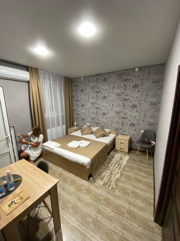 Отель предлагает комфортные номера (от 2500 до 5000 ₽/ночь) с кондиционером, звукоизоляцией, холодильником, мини-баром, телевизором, чайником и кофеваркой. В каждом номере есть фен, халат и бесплатный Wi-Fi.