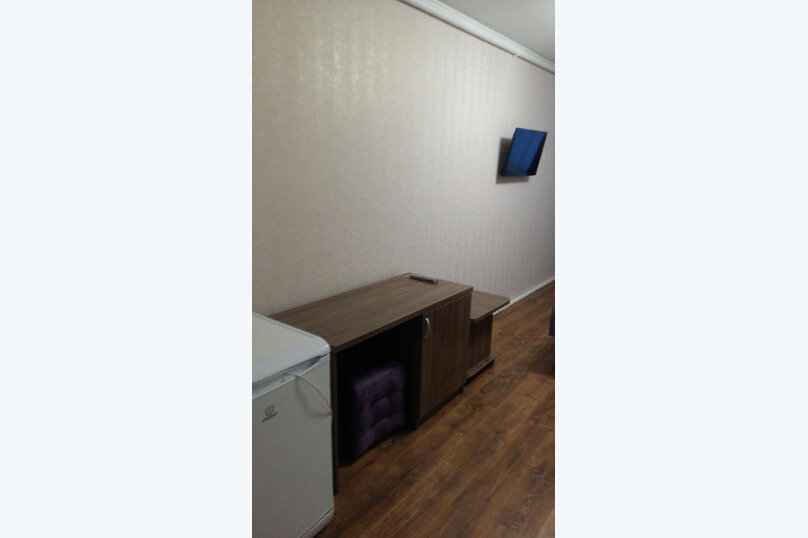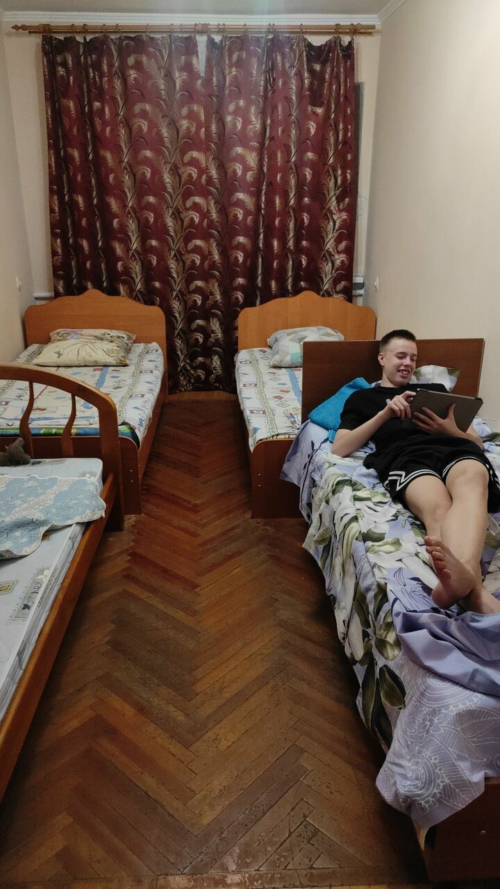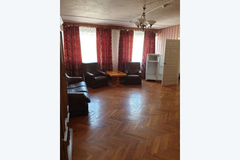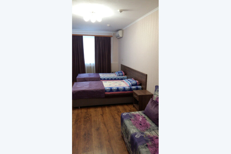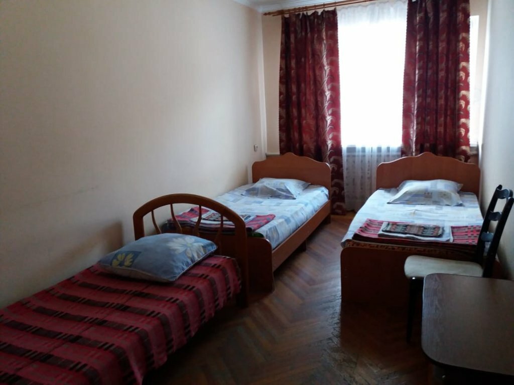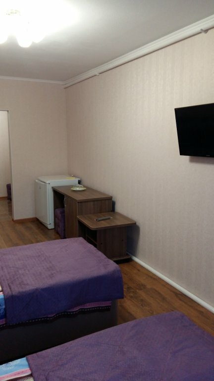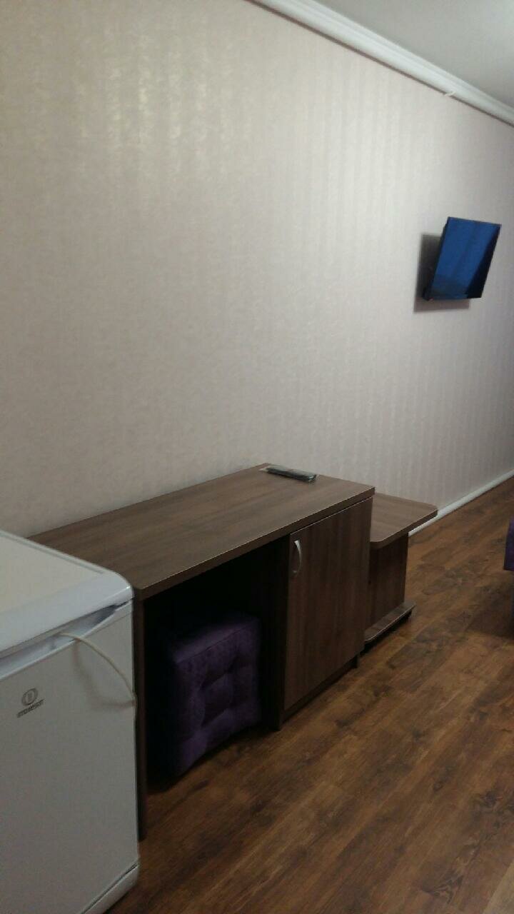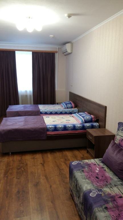 На твиле пишут, что есть 4-местные номера, в принципе , если заменить диван, на тот который можно разложить или кровать, то получится 4-местный номер, кровати одноместные поэтому мне с женой на одной кровати поместиться было сложно. В шкафу не хватает дверей, стульев всего 2, да да 2 стула в 4-местном номере и один уж точно небезопасный, вода из крана воняет так, будто это канализация. Шкаф, стол, стулья и паркет точно застали СССР, лак на паркете и шкафу кое-где сохранился. Комнаты просторные, отличная парковка на территории. Остановились тут, чтобы переночевать попути в Крым и это лучше, чем палатки или машине.