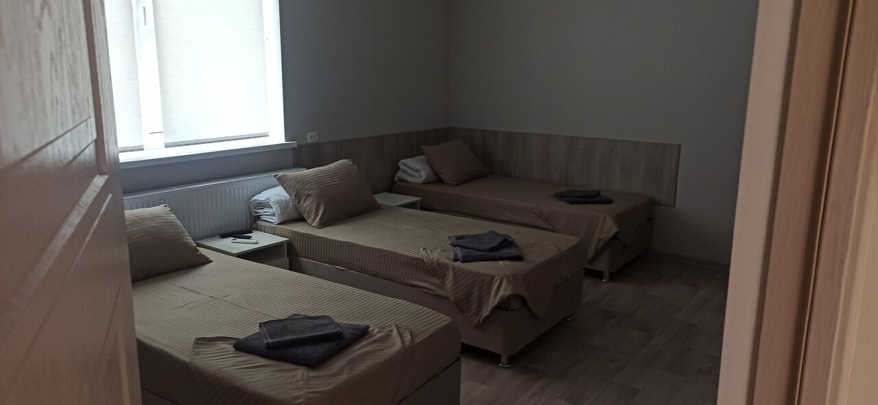Хочу поделиться мнение о данной гостинице. К счастью, я не могу поделить отзыв на минусы/плюсы, так как все состоит из второго. 1. Местонахождение: всего 15 км от трассы м-4, что вполне недалеко 2. Цена: за 3600 получили номер на 4 человек. Внутри чисто, уютно. Имеется кондиционер. В ванной одноразовые зубные щетки и пасты в индивидуальных пакетах. А еще, самое главное, это доступ к кухне. Наличие холодильника (заморозить генераторы холода для холодильника), чайника и плиты с кастрюльками обрадовало. Минус только вонючая вода (бутылки с питьевой водой предоставили). Заезжали целых 2 раза (по пути к морю и обратно). Рекомендую!!)