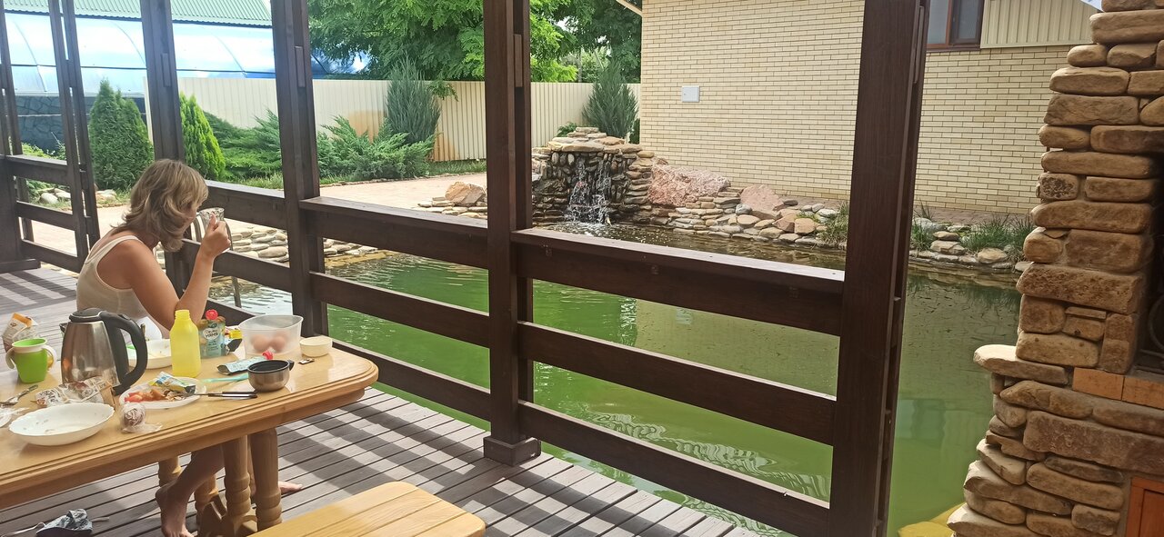 Просто идеально! Чисто, все новое, светлое, очень понравилось. Останавливались на одну ночь, быстро заселили, вежливая девушка нас встретила. Кухня на улице, рядом с прудом, в котором плавают рыбки
