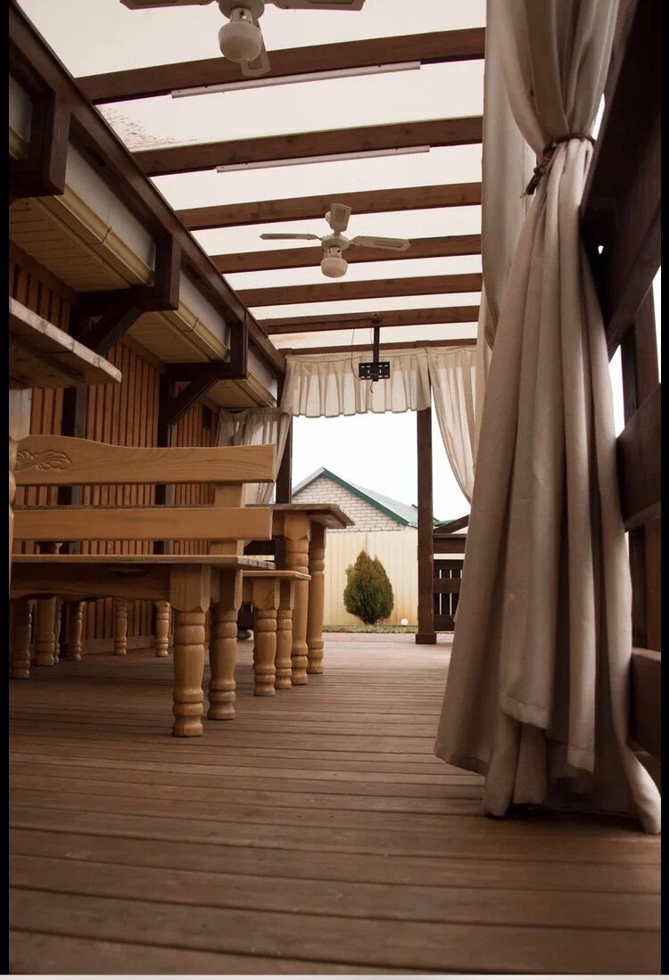 Услуги: — Номера с кондиционером, Wi-Fi, телевизором, холодильником, феном и санузлом. — Бесплатная парковка, общая кухня, летняя веранда, площадка для пикника. — Возможно заселение с детьми (предоставляется детская кроватка и стульчик). — Дополнительно: стиральная машина, утюг, посуда, микроволновка, плита.