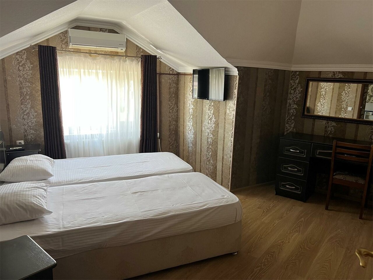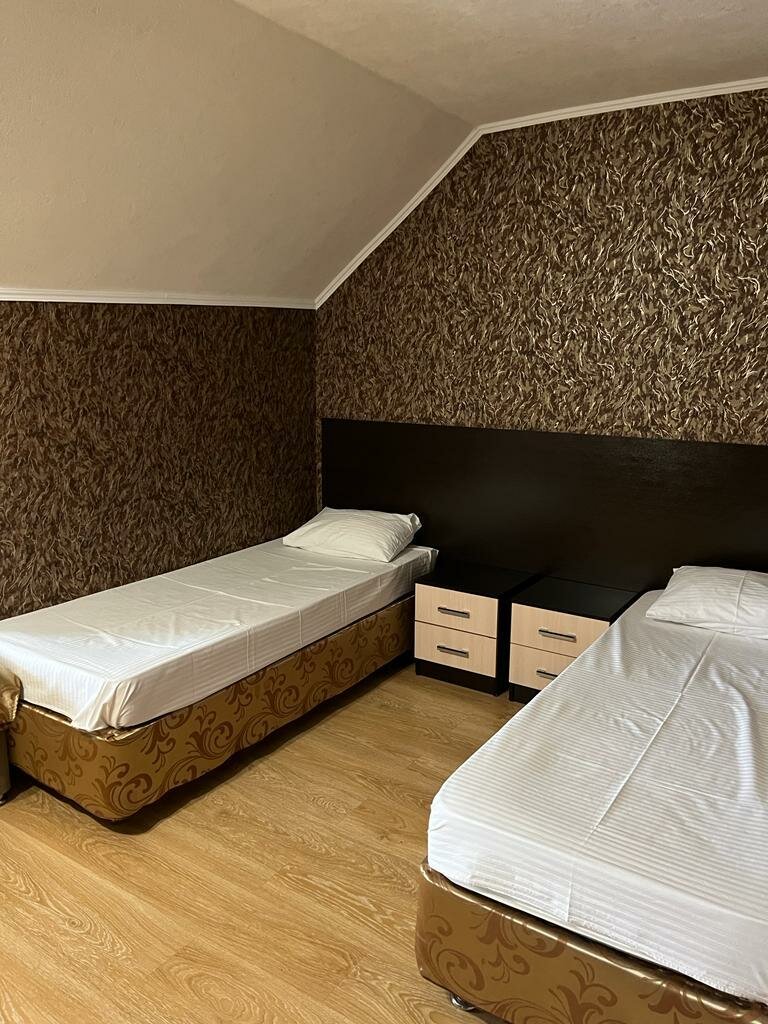 Номер красивый с двумя односпальными кроватями. Белье чистое. Хорошо отдохнули.Утром проснулись под крик петушка из соседнего дома.
