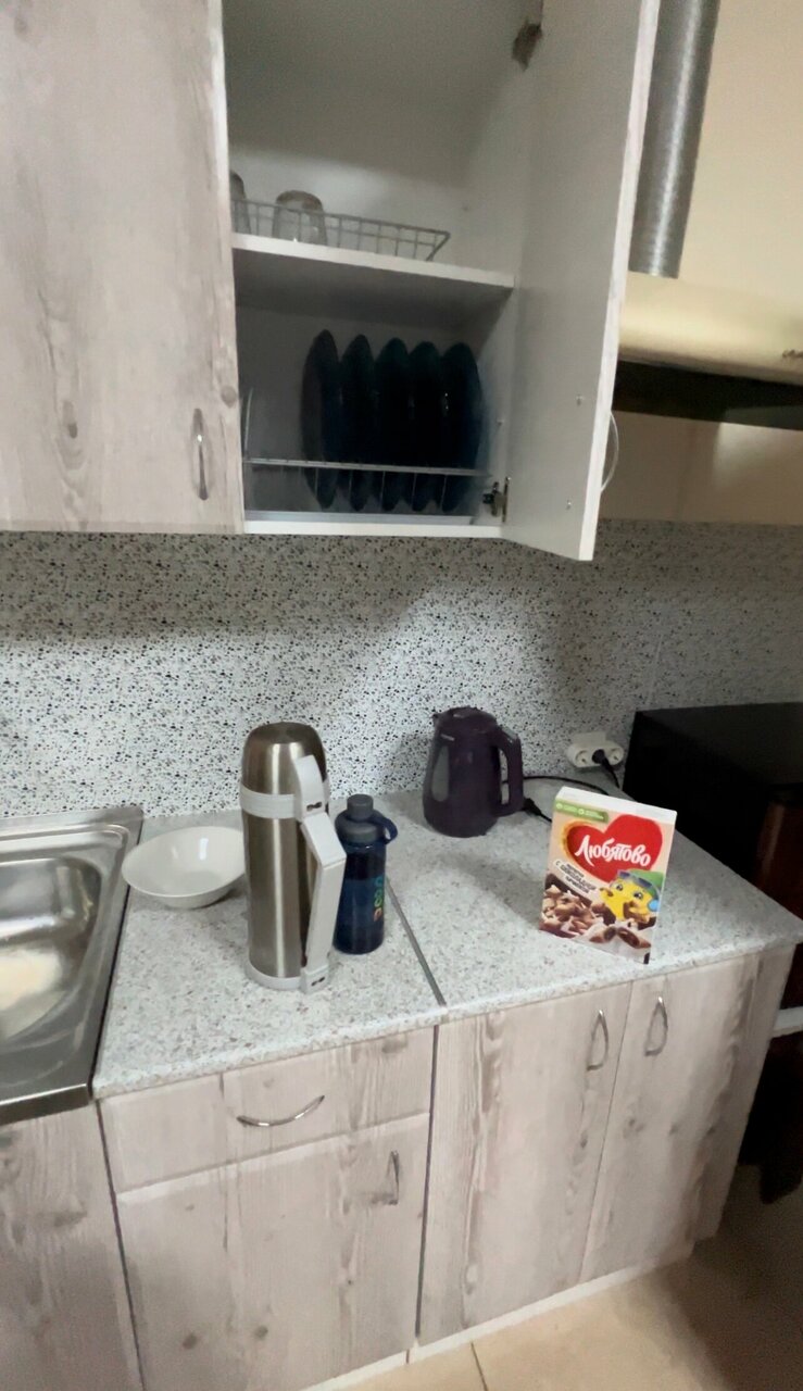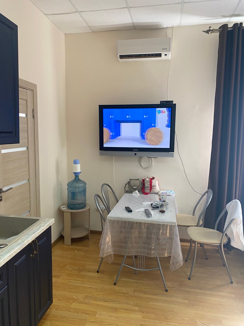 Брали просторный двухкомнатный номер для ночвки, всё необходимое есть: полотенца, чайник, холодильник, а главное — кондиционер и телевизор в каждой комнате.