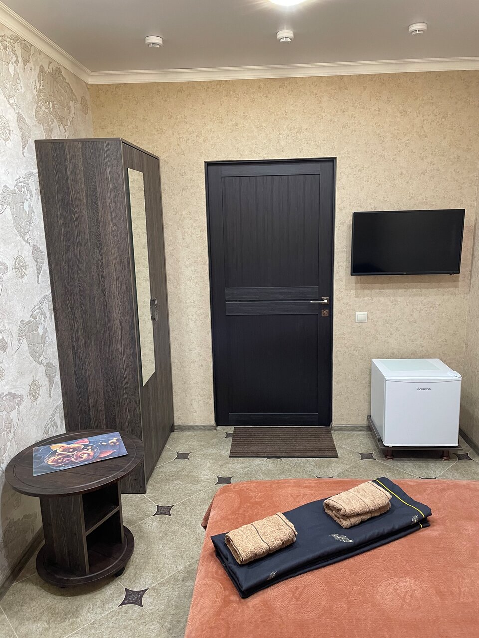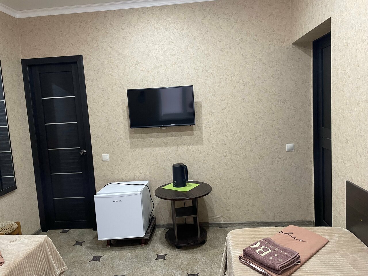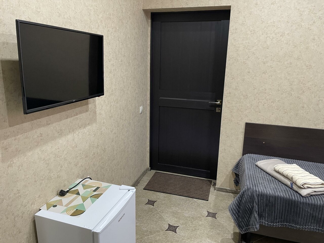 Номера маленькие, чисто на ночлег. Есть чайник- а чай и воду нужно брать свое.
