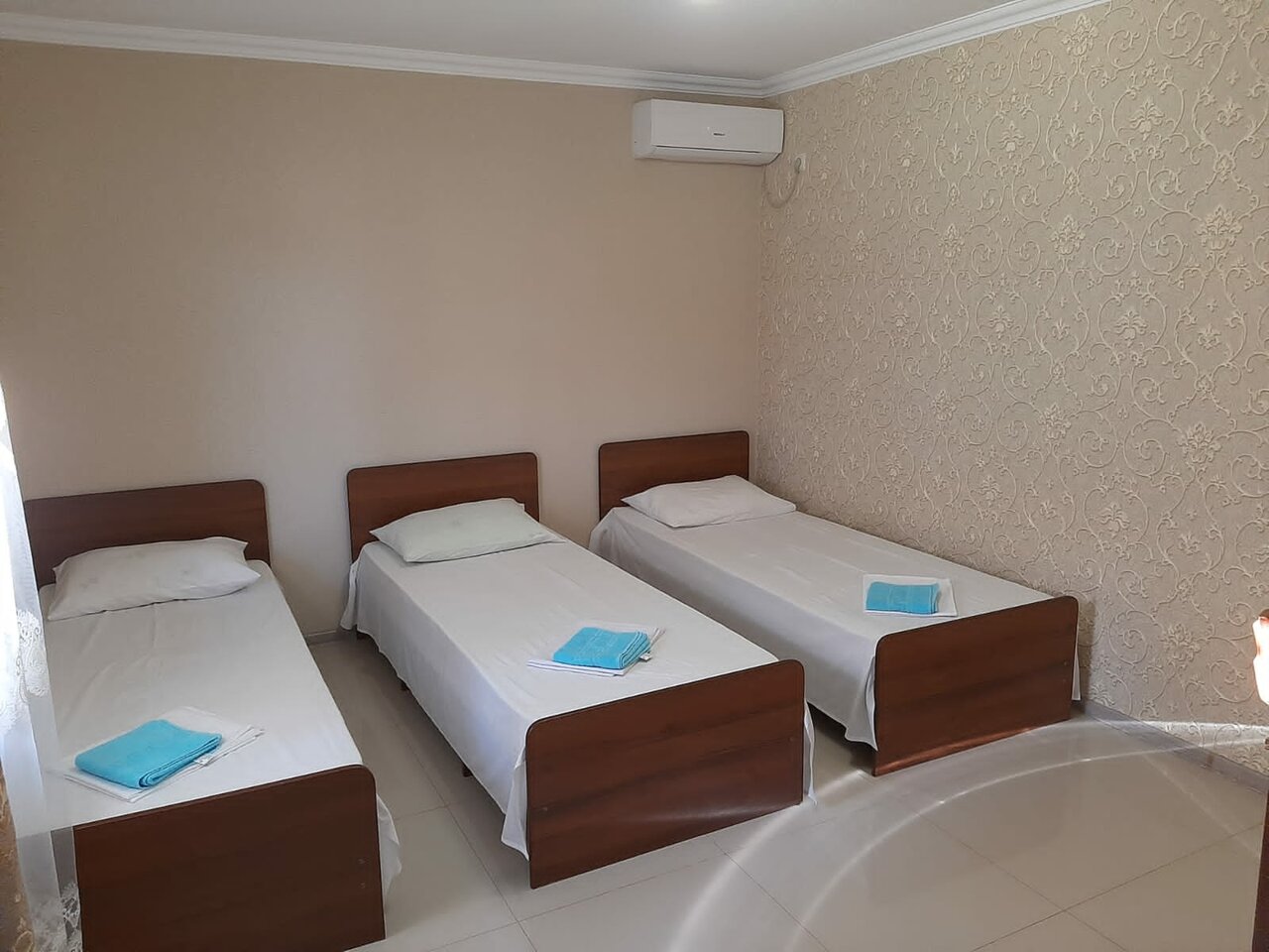 Очень просторные комнаты в частном доме. 1500 трехместный, 2000 четырехместный. душ туалет кухня. все чисто. есть кондиционер и телевизор в каждой комнате