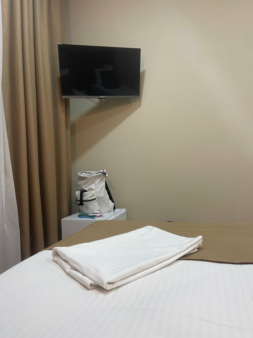 Ночевали дважды в этом отеле. Понравилось. Чисто, аккуратно. Белоснежное белье, есть все принадлежности для отдыха с дороги (полотенца, шампуни, гель для душа, зубные щетки и паста, вода питьевая в бутылках, телевизор, холодильник, чайник, кондиционер). Из минусов: персонал использует глаголы в повелительном наклонении (пишите номер, давайте паспорт и тд) Вежливость покоряет города, господа