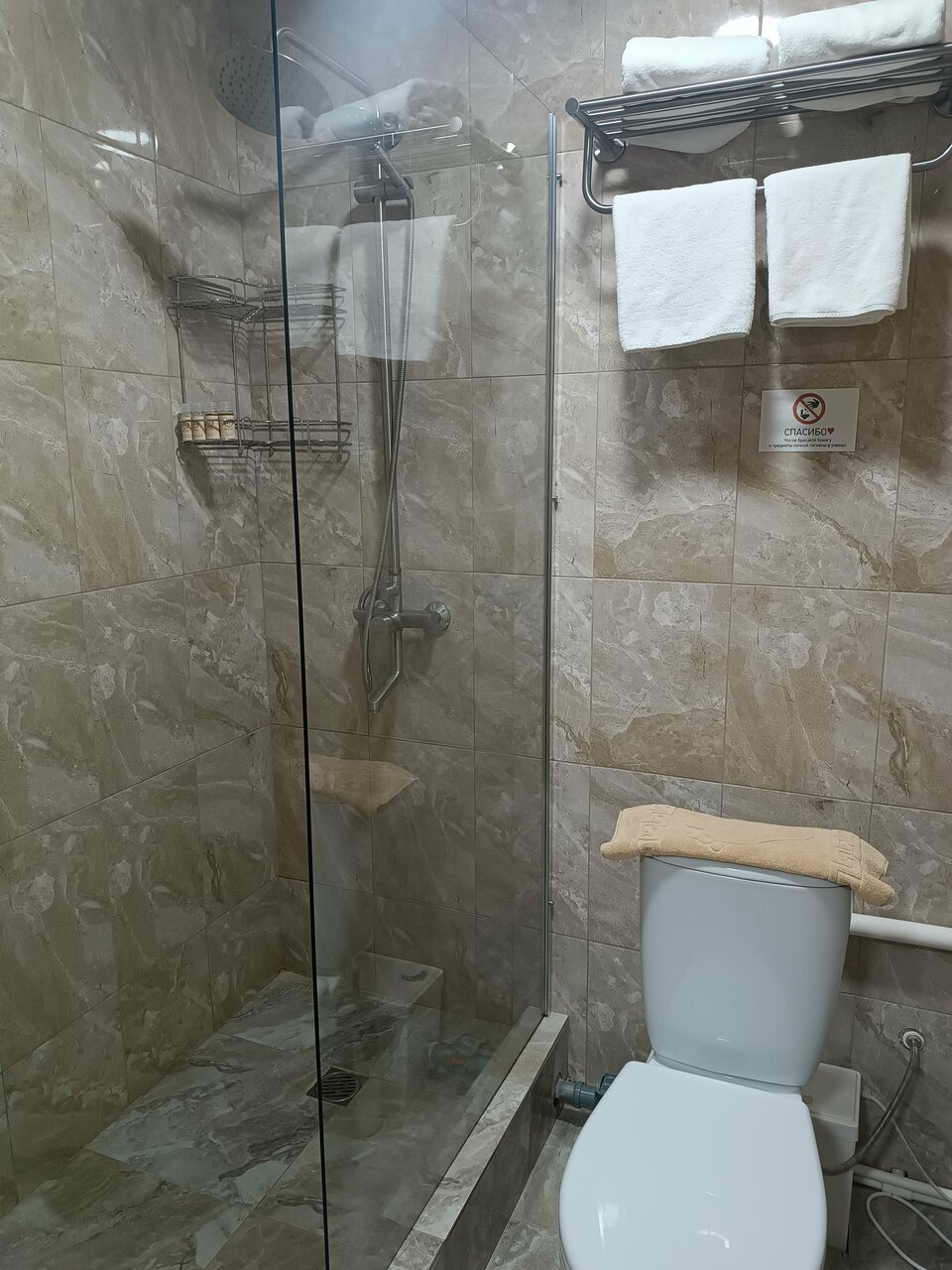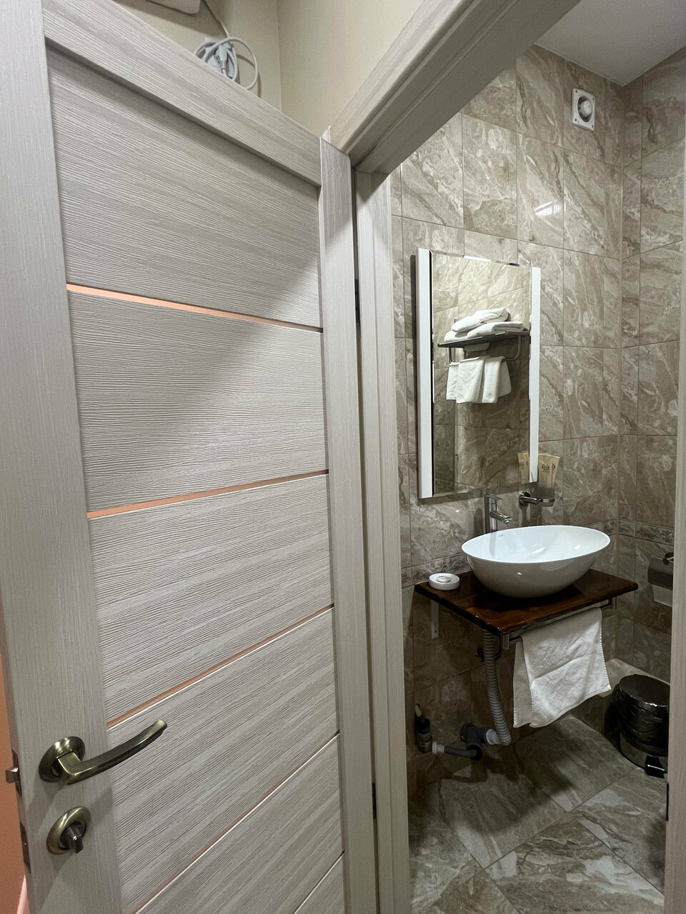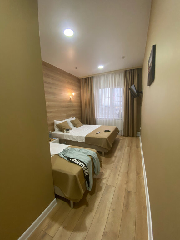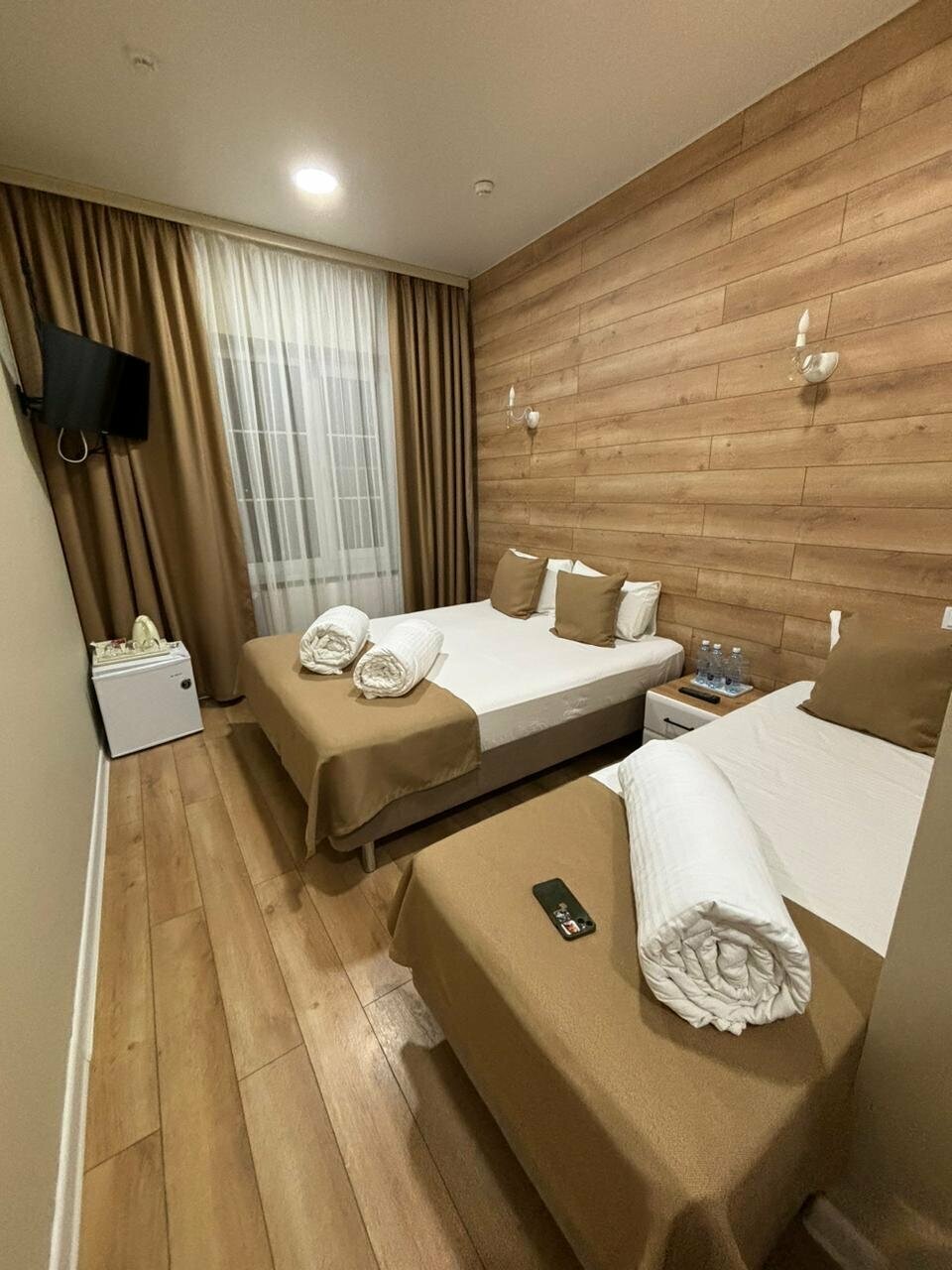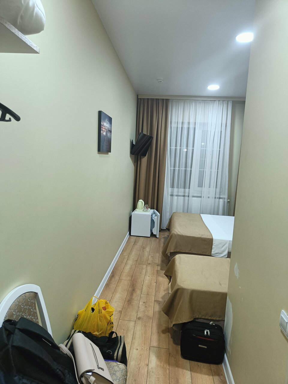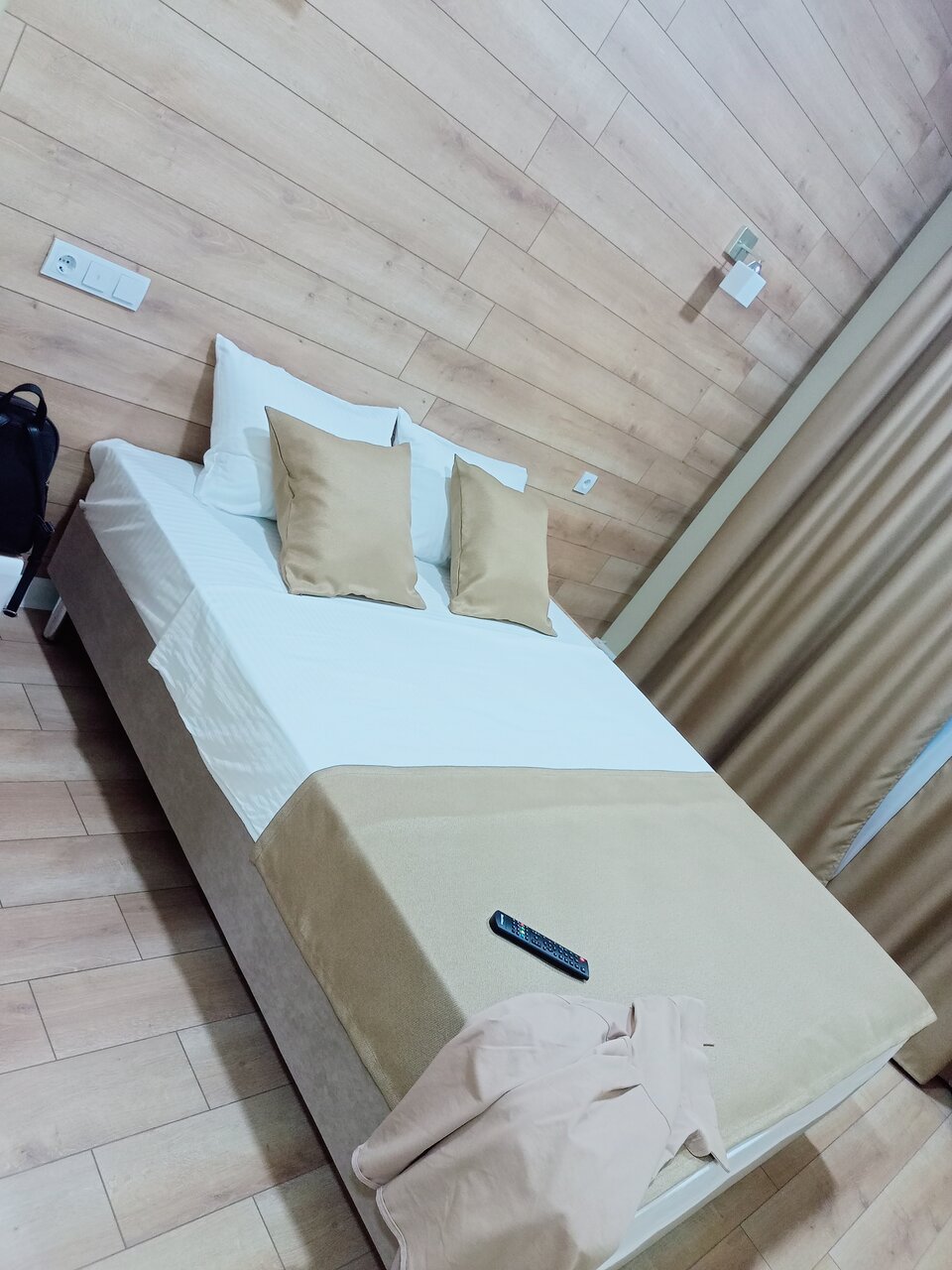 Мы в восторге. Ехали в августе 2022 на море-я,муж и 2 детей 6 и 10 лет. Остановились, зашли в отель (не бронировали номер!).Администратор сказала, что свободных номеров нет, но она постарается нам помочь. В итоге был найден 2-х местный номер, и так как для четверых этот номер не предназначен, предложила старшего ребёнка взять к себе в комнату отдыха. Мы поднялись в номер, там стояла огромная кровать, на которой мы прекрасно все уместились. Номер сам шикарный, чистый. Свежее выглаженное постельное бельё, в душевой полотенца, гели и шампуни, зубные щетки и паста. Всё идеально чисто, отличный новый ремонт, кондиционер, телевизор. Так же в подвале был холодильник, в который нам любезно разрешили положить продукты и охлаждающие элементы из сумки-холодильника.Так же в номере стояли бутылочки с питьевой водой. В общем всё на высшем уровне!