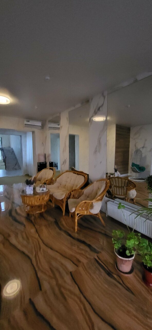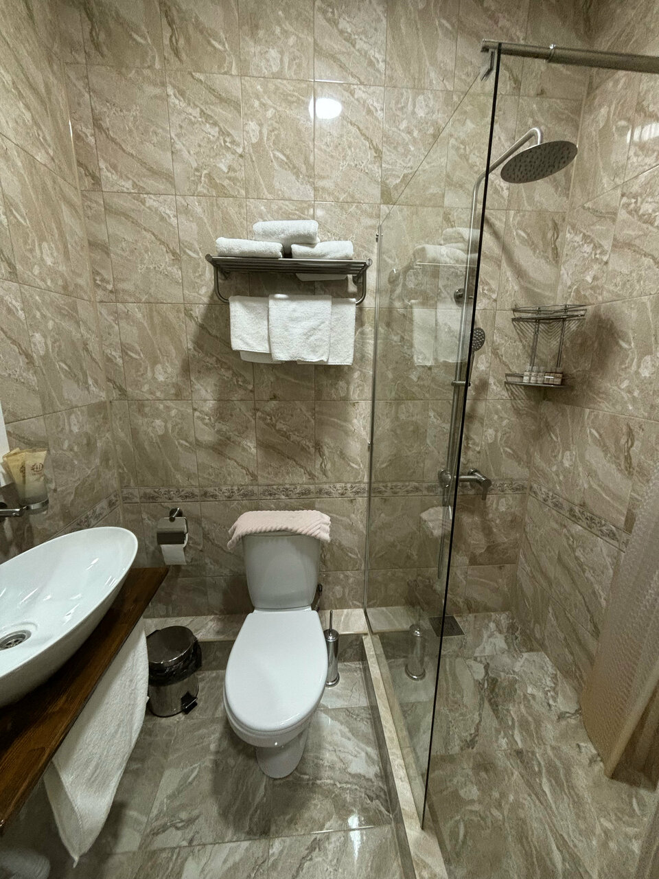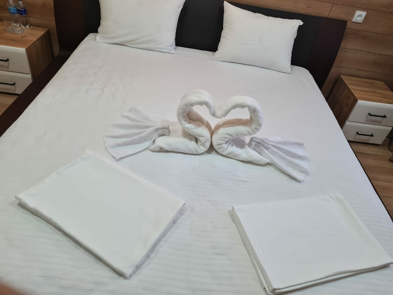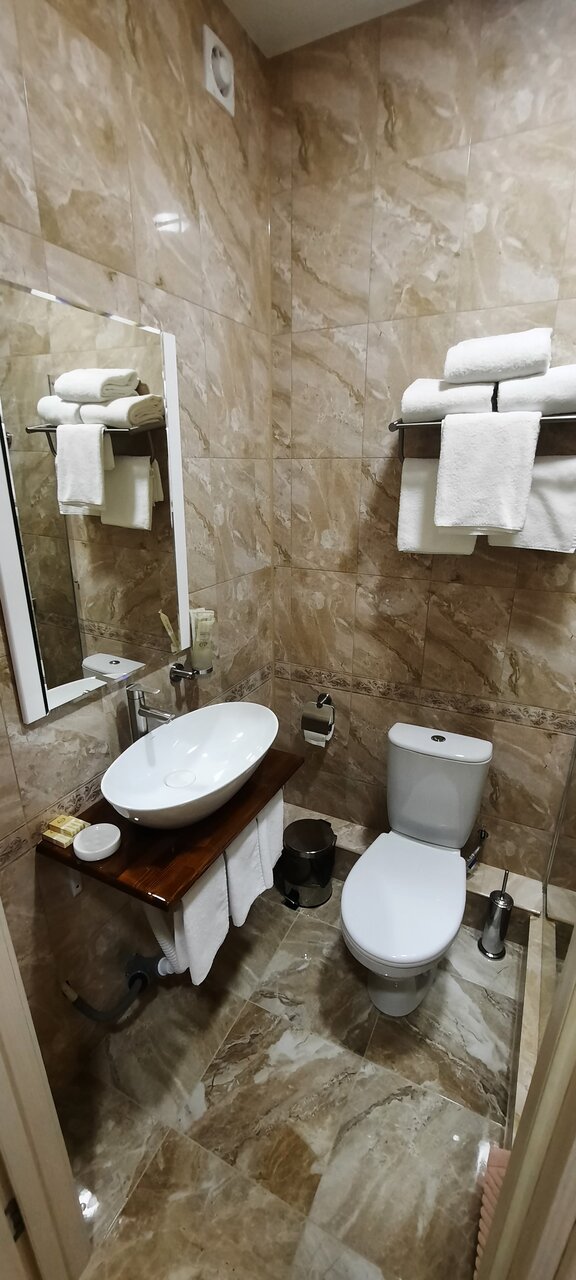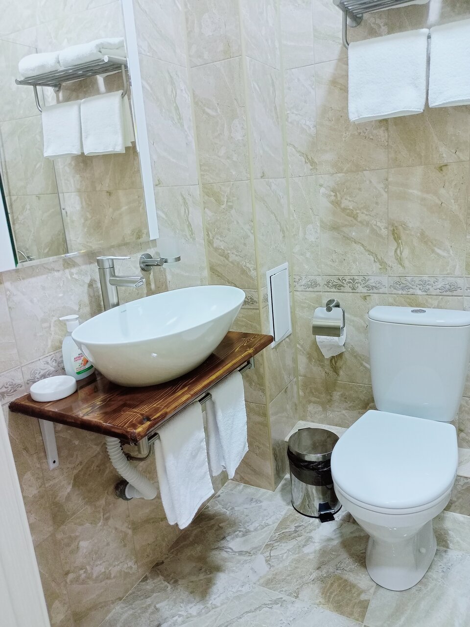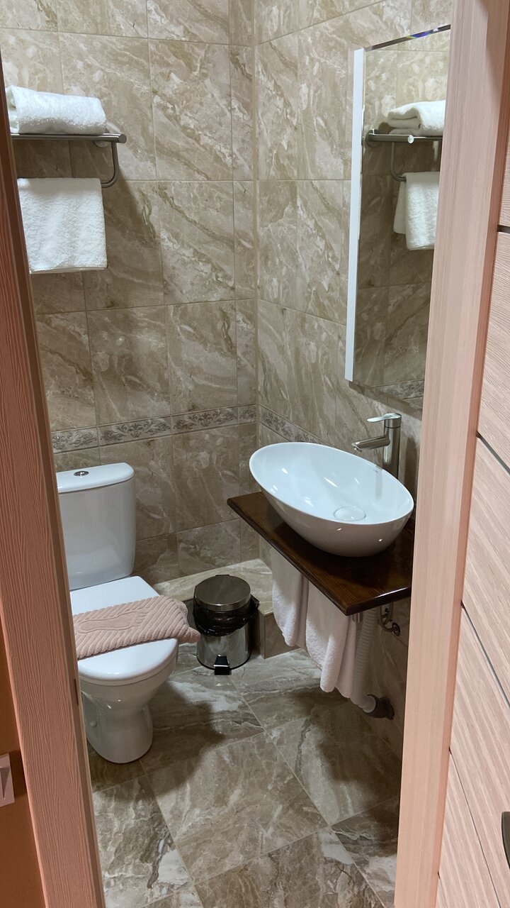 Мы в восторге. Ехали в августе 2022 на море-я,муж и 2 детей 6 и 10 лет. Остановились, зашли в отель (не бронировали номер!).Администратор сказала, что свободных номеров нет, но она постарается нам помочь. В итоге был найден 2-х местный номер, и так как для четверых этот номер не предназначен, предложила старшего ребёнка взять к себе в комнату отдыха. Мы поднялись в номер, там стояла огромная кровать, на которой мы прекрасно все уместились. Номер сам шикарный, чистый. Свежее выглаженное постельное бельё, в душевой полотенца, гели и шампуни, зубные щетки и паста. Всё идеально чисто, отличный новый ремонт, кондиционер, телевизор. Так же в подвале был холодильник, в который нам любезно разрешили положить продукты и охлаждающие элементы из сумки-холодильника.Так же в номере стояли бутылочки с питьевой водой. В общем всё на высшем уровне!