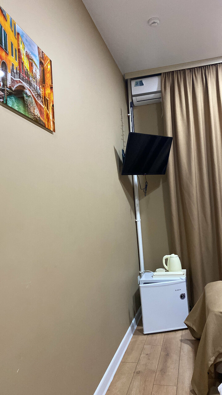 - Наличие холодильника, телевизора, чайника.; Полотенца и принадлежности для душа в номере.; Без доплат за детей.; Чистая прилегающая территория.; Белоснежное бельё и постель.