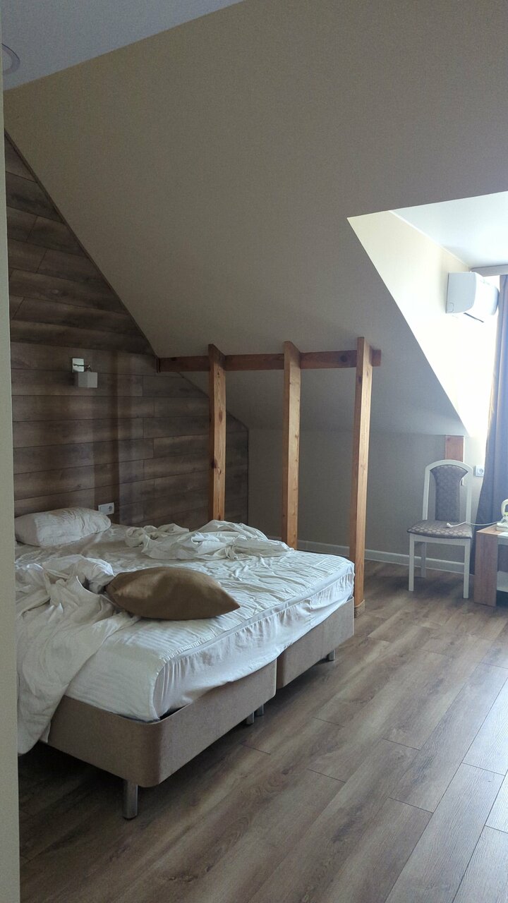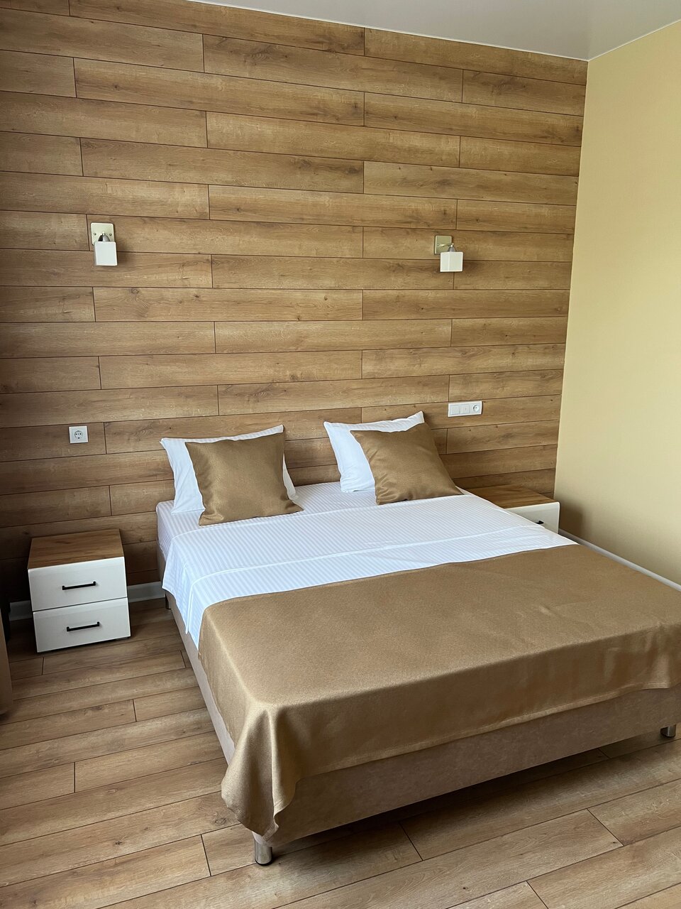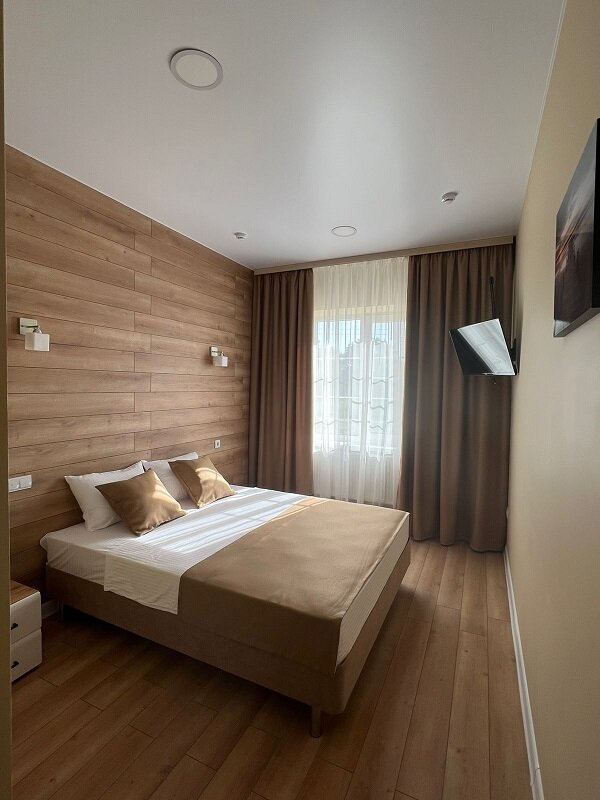 Единственный плюс, что гостиница новая. Не могу советовать, т.к. абсолютно не поспали, в люксе и кровать и диван дубовые, такое чувство, что спишь на столе, окно открыть не возможно, трасса в 15 метрах, а с кондером спать тоже не великое удовольствие, телевизор не работает(точнее с дикими перебоями), вайфай работает только в холле на 1 этаже. Хозяевам надо учитывать в первую очередь, то что у них останавливаются именно отдохнуть на ночь, на фиг никому не нужен ваш дизайнерский ремонт, главное чистота и удобная мебель. И ещё нужно иметь с собой средства от комаров, на нас живого места не осталось после этого люкса. Мне есть с чем сравнить, за 4000 ночевали в Славянске на Кубани с шикарным завтраком, а самое главное на удобных кроватях.