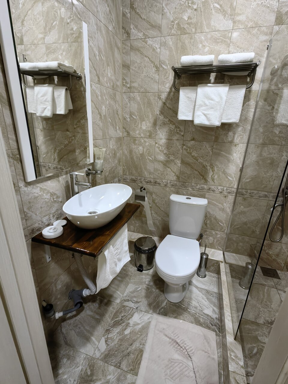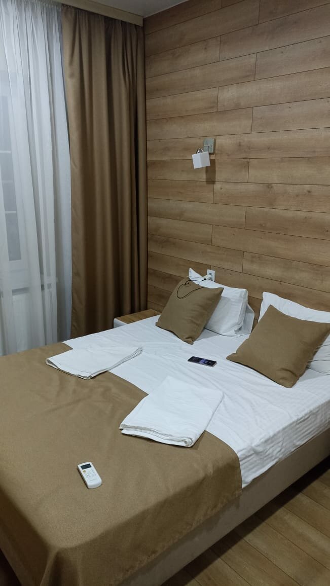 Хороший отель, находящийся около дороги. Персонал очень дружелюбный и отзывчивый. Номера чистые и свободные. Есть все удобства: холодильник, кондиционер, тапочки, вода, чайный сервиз. В ванной есть полотенца, зубные щётки и паста. Минусов нет! Всем советую.