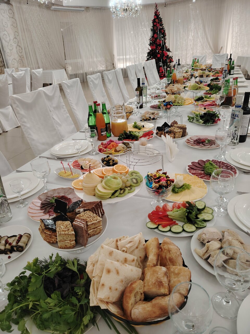 Есть парковка, два банкетных зала. Внимательные официанты и отличная кухня.