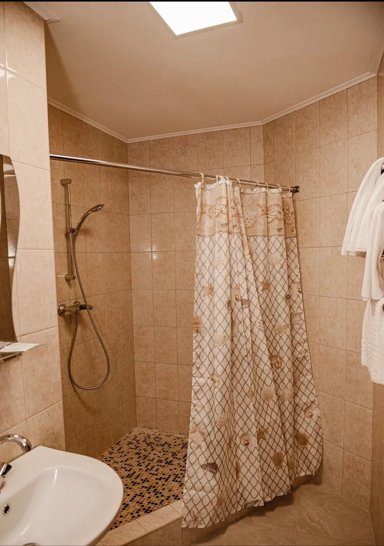 - Хорошие душевые принадлежности (шампунь, гель, полотенца, тапочки).