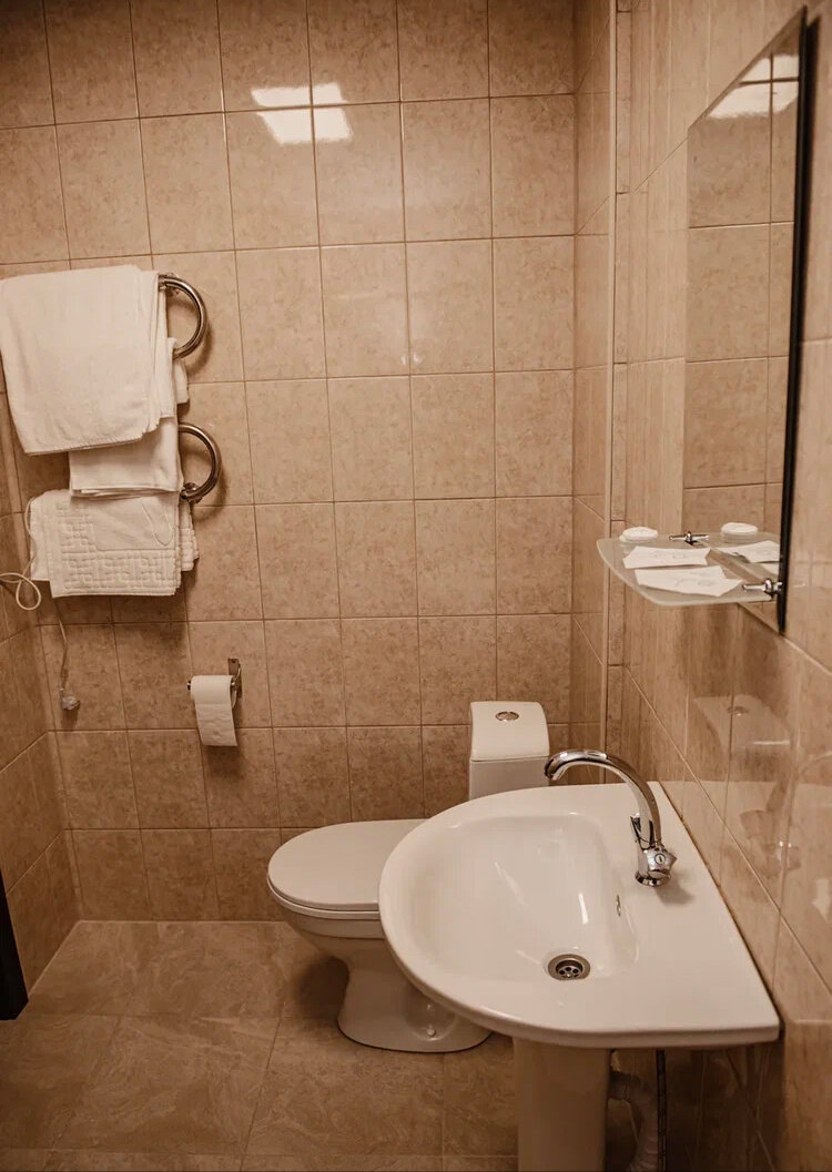 Снимали 2-местный номер. Цена адекватная. Очень чисто и тихо. В номере туалет, душ, большая кровать, телевизор, кондиционер, чайник. Отельные шампунь, гель для душа, мыло. Отдельное спасибо за классный матрас!!! Было очень комфортно спать. Отличное место для отдыха в дороге!