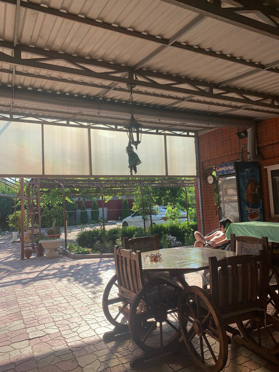 Сентябрь 2023. Вай-фая нет (хотя по телефону хозяйка сказала, что есть), мобильный интернет на теле2 и Билайне проблематичны (эта часть станицы в низине — может, поэтому). В номере все удобства, телевизор — что-то проблемы с каналами. Территория ухоженная, есть стоянка, зона для отдыха. Странные кресла — деревянные, с боковушками в виде колёс. Поэтому ассоциация с инвалидными колясками. Гостиница чисто поспать и дальше, в путь. На крепкую четвёрку, но ещё балл снижаю за обман с вай-фаем.