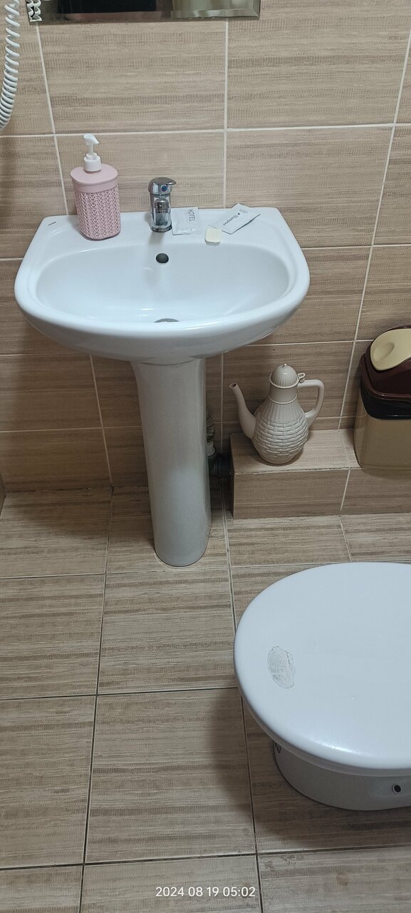 Кондиционер работает ( это было важно т.к. на улице было уже вечером +37). В номере есть душ и туалет. В душе одноразовые гель для душа и шампунь. Полотенца чистые как и постельное бельё. На рецепшине приветливые женщины. Все объяснили, а при выезде мы просто взяли свои сумки и оставили ключ в замке. Никто за нами ничего не проверял. Теперь минусы. Кондиционер дует прямо на детскую кровать. Но это мелочи. Самое чудное это бронирование. Только по телефону и с 8 до 9 утра. Пришлось жене несколько раз набирать, пока дозвонилась. Что мешает сделать бронирование на сайте ? Можно и оплату онлайн. А то как в каменном веке.