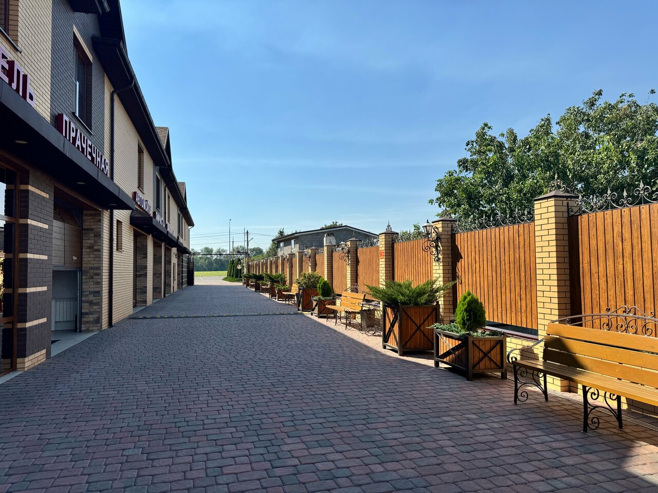 - Удобное расположение (недалеко от трассы, но тихо).
