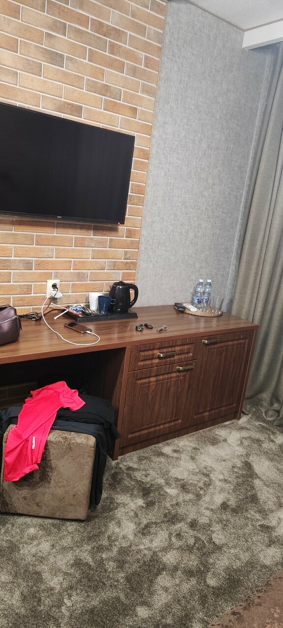 Большой отель! С одной стороны плюс, с другой — приходится много ходить, чтобы перенести вещи или дойти до машины. Когда приезжаешь на 1 ночь, это важный фактор. Комфортно, чисто, хороший большой паркинг. Я бы добавил указателей, чтобы найти можно было не только по навигатору. В остальном, все понравилось. Бронировал место заранее. Бронь бесплатная. В номере душ, столички, шкаф, удобная большая кровать. Не работал холодильник. За это минус