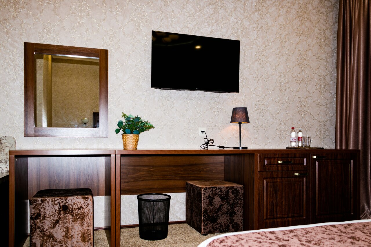 - Чистый санузел.; Отличная звукоизоляция.; Индивидуальная отделка и оформление номеров.; Современная и добротная мебель.; Возможность бронирования без предоплаты.