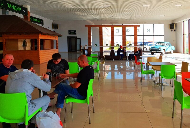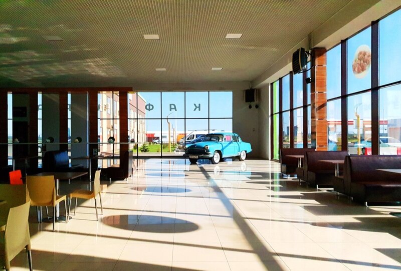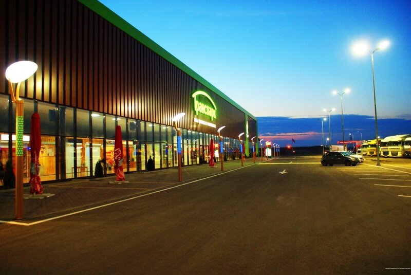 Просторная стоянка с АЗС с магазинами и кафе. Вес сделано чтоб удобно отдохнуть в дороге а если нужен ночлег приличная гостиница с хорошим сервисом и приемлемыми ценами. Мне нравится.
