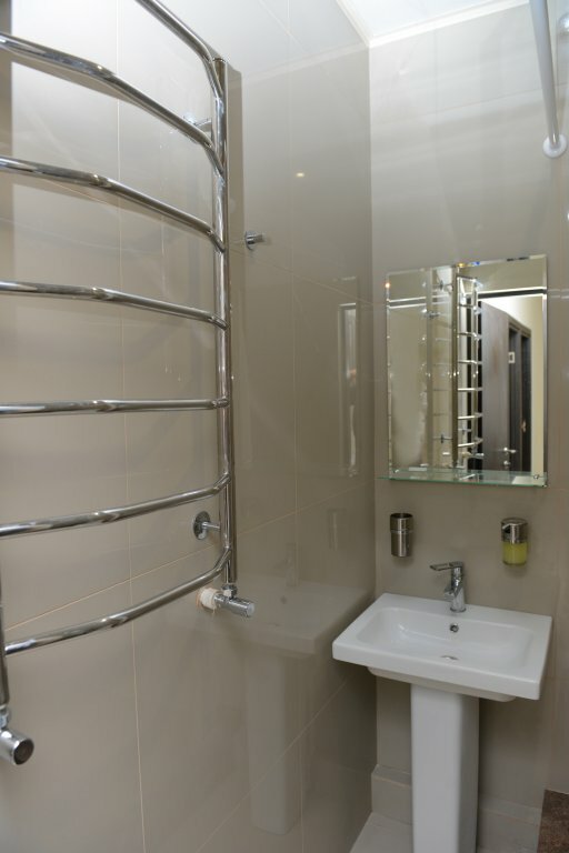 Небольшой уютный номер находится на первом этаже, широкое окно выходит на северную сторону в тихий внутренний двор. Двойная входная дверь обеспечивает тишину и уединение. Напротив широкой двухспальной кровати расположены оригинальная душевая кабин...