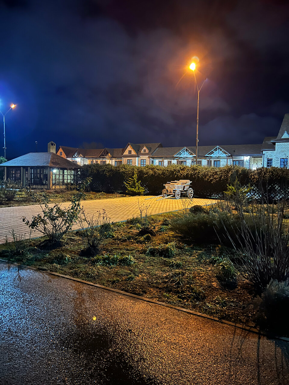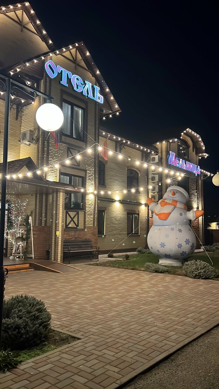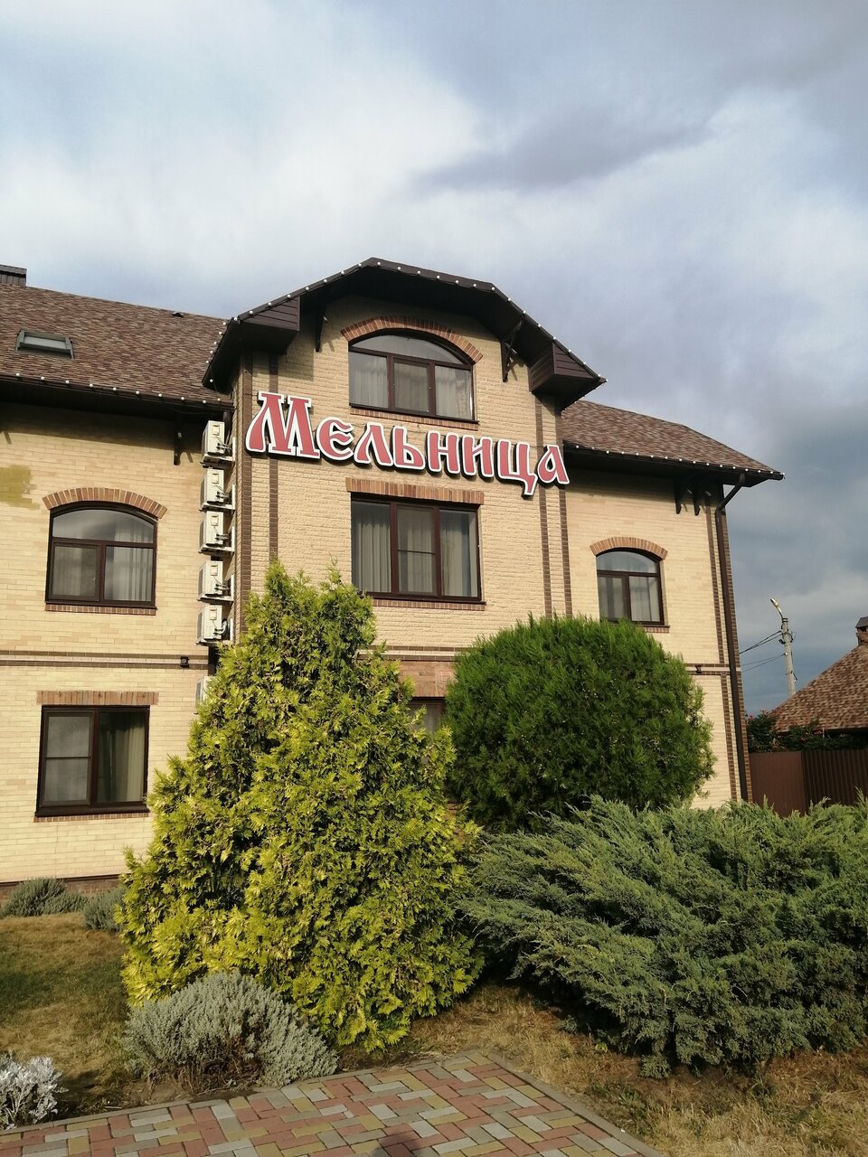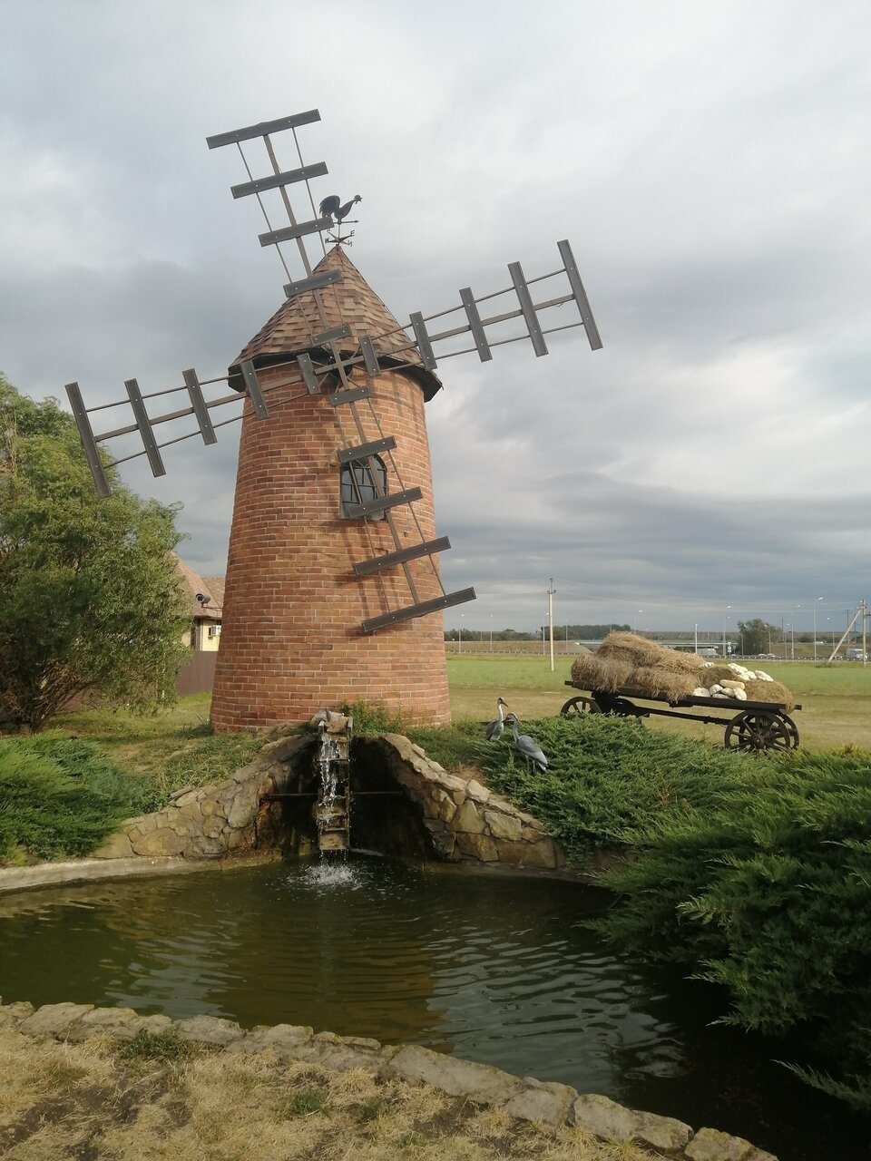Хороший отель для ночёвки, когда едешь, например, к морю. Бронировали за 3 дня. Номер чистый. Есть чайник в номере, холодильник. На территории есть кафе=столовая. Внутри территория красивая — цветы, экспозиции, лавочки, фонарики, ну, и, конечно, мельница.