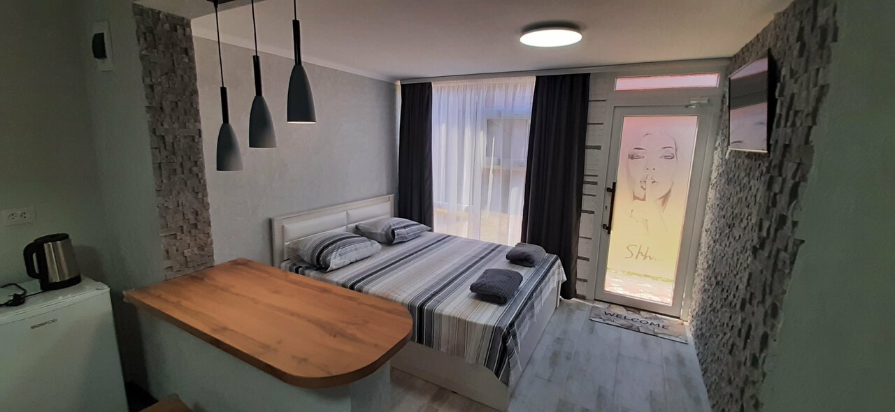 НОВЫЙ . Очень красивый номер с современным ремонтом ,с удобствами в номере. Витражные окна. В номере все новое : мебель, постельное белье ,холодильник,кондиционер,телевизор,чайник и т.д . Отдельный вход, бесплатная закрытая, охраняемая парковка, н...