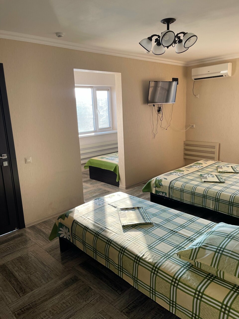 Соотношение цена-качество отличное! Ночевали тут по пути к Черноморскому побережью. Номер стоил 1500р на двоих. Просторный номер с туалетом и ванной, есть фен, но нет туалетных принадлежностей, полотенца маленькие. В номере было прохладно, но мы не мёрзли. Хозяин встретил нас глубокой ночью и был приветлив. В отдельном домике есть кухня. Расположена гостиница в стороне от дороги, в тихом месте, что немаловажно для отдыха в пути.