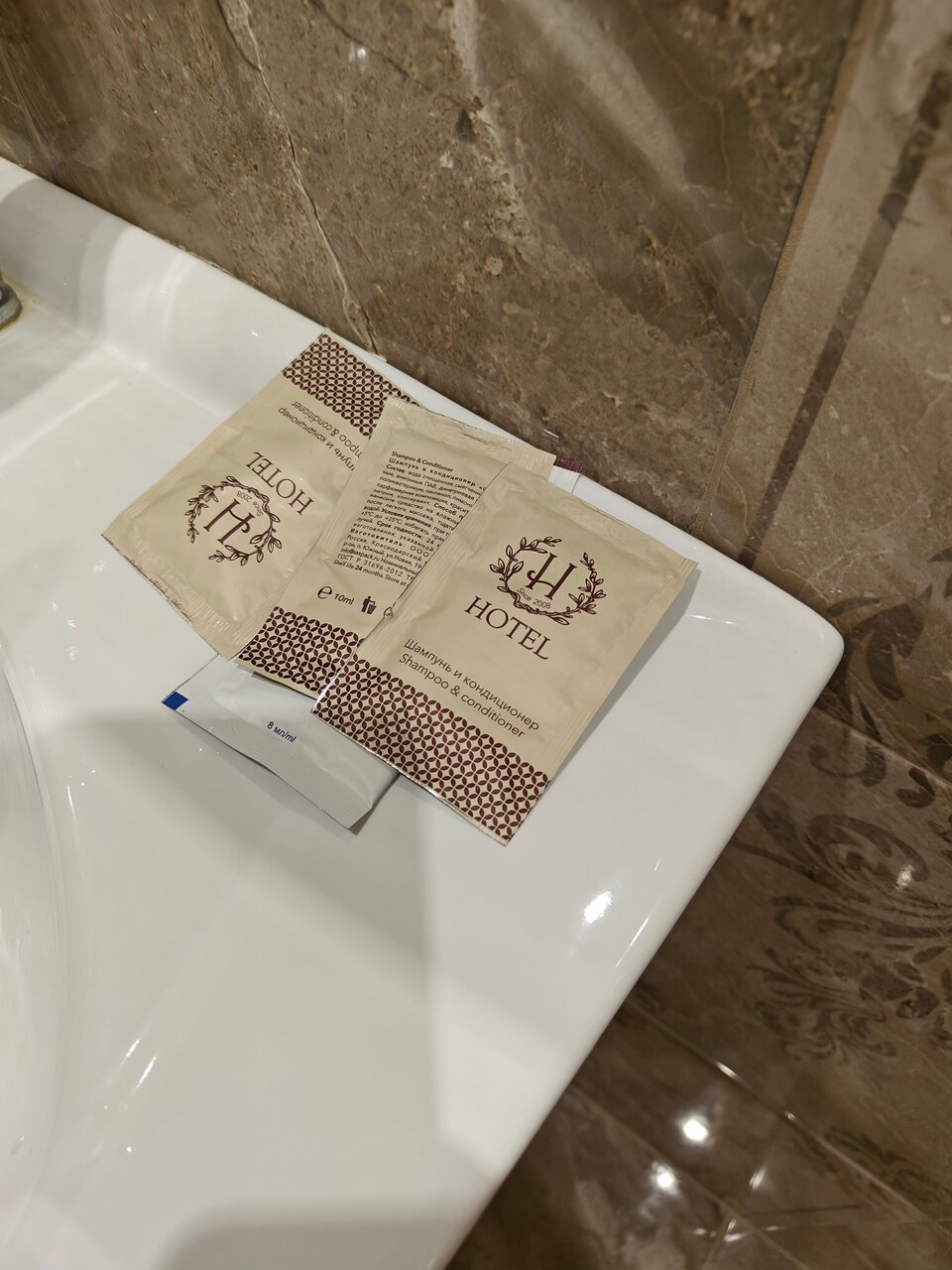 Номер чистый и большой, новый, красивый, кровати нормальные, вроде все прекрасно! Взяли 3500 за 4х, сойдёт. Но. Ни одной тумбочки, стула, складывать вещи некуда. В ванной ещё хуже. Для шампуня ни одной малюсенькой полочки в душе, ноль, и фена нет. Пить в номере нечего, ни чайника, ни воды. И вода всё время скачет то холодная,то горячая. Наш этаж 4. Кухня, холодильник, чайник внизу на 1м этаже, побегайте после пробок, когда чуть живой… Своих денег не стоит. Не хочу сюда больше.