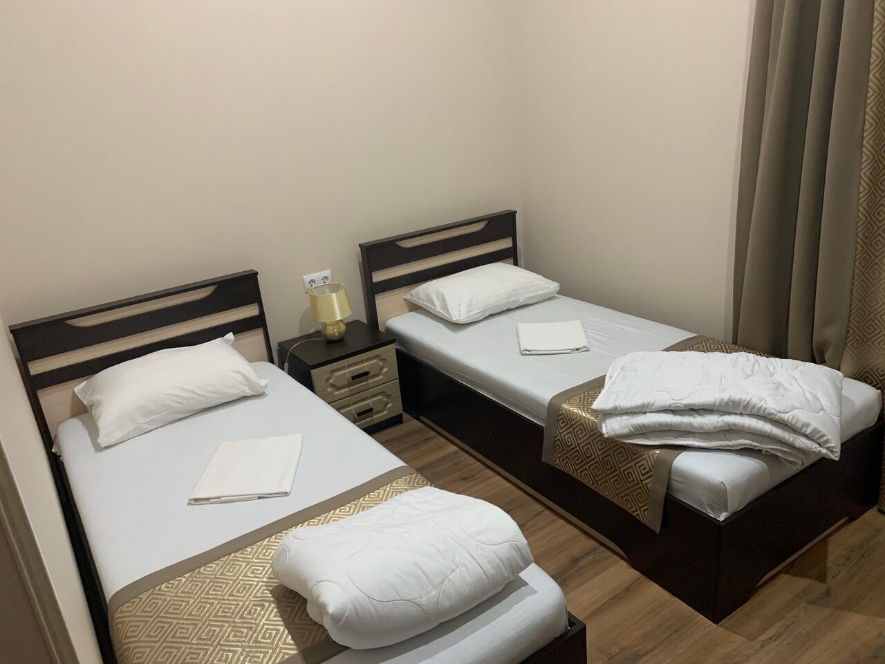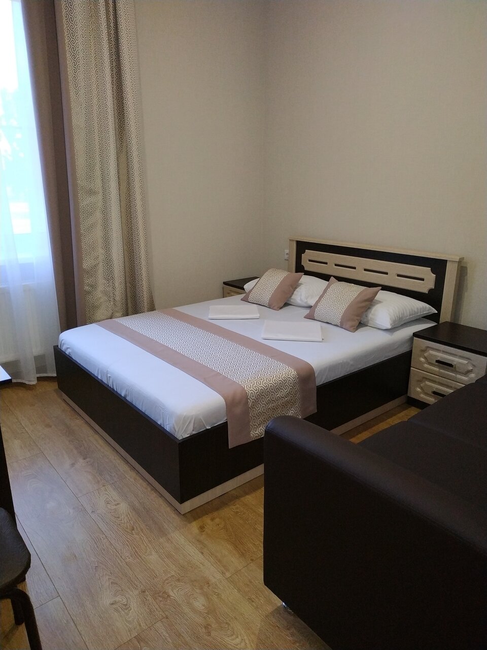 Хороший вариант на одну ночь, все новое, кровати средние, немного чувствуются пружины . Администратор вежливая, все рассказала, показала.