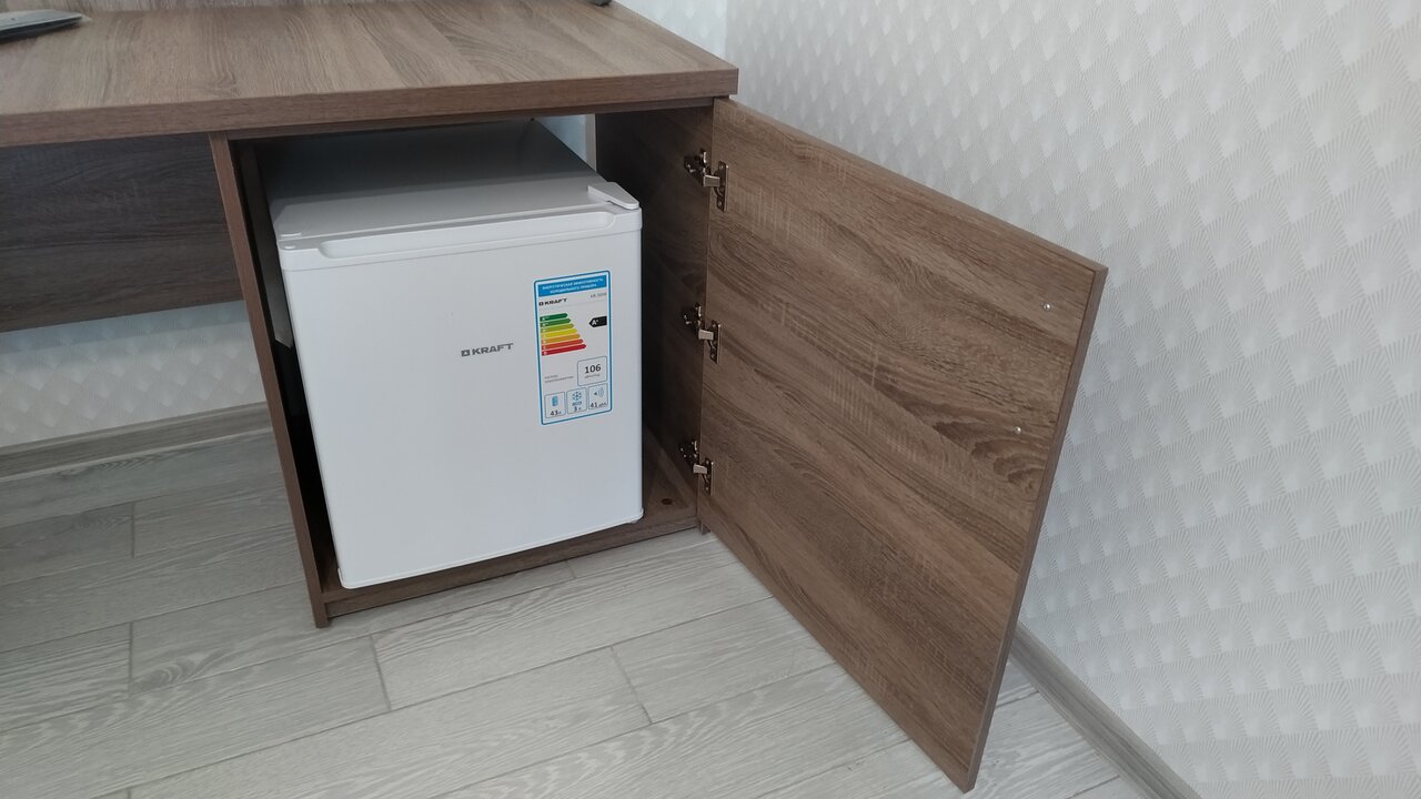 - Есть кондиционер, телевизор, холодильник, чайник.