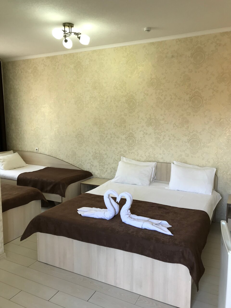 Номер с двухспальной и односпальной кроватью на 2-3 человек со своим санузлом.