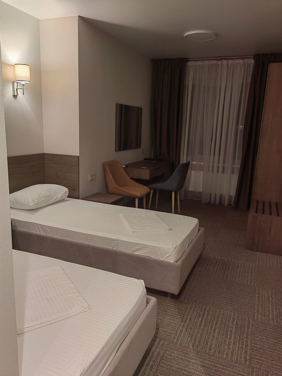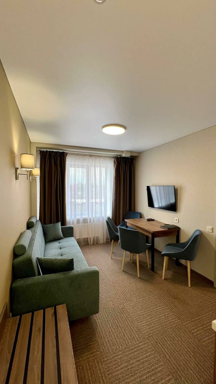 Останавливаюсь семьей на одну ночь,номер Люкс. Все новое,чисто,было комфортно. Дороговато для данной местности,заплатили 5600 за номер. Что не понравилось: Нет завтраков,но в номере есть кухня можно было бы приготовить,Но нет ни чайника ни другой кухонной утвари для этого,чайник в коридоре так же как и бойлер,не удобно особенно с маленькими детьми,одеяла не заправлены в пододеяльник и пришлось самой стелить постель на диване для старшей дочери,вот эти мелочи доставили небольшой дискомфорт, администратор выполняет и работу клинера,просто выглядит это не эстетично. А так все понравилось,процветания и хороших гостей. Оставайтесь так же приветливы с идеальной чистотой. Хотела поставить пять ,но выше перечисленно почему сняла звезду.