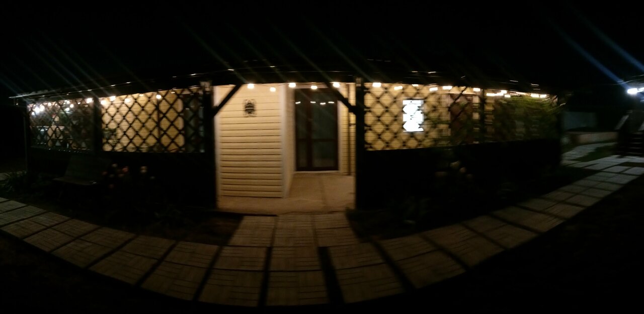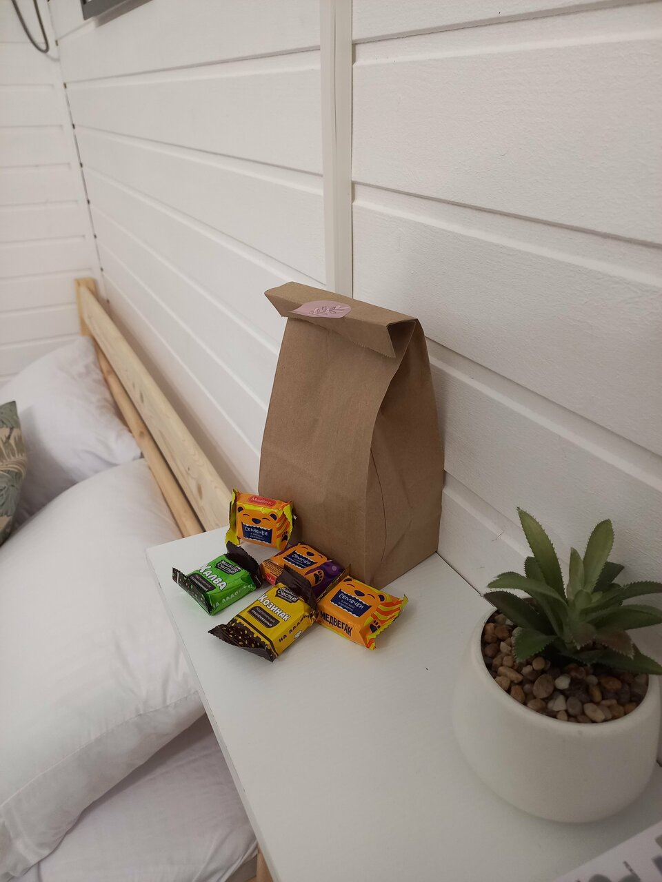 Ночевали 1 ночь в домике. Домик хорошенький, уютный . Есть своя кухня ( газовая плита, микроволновка,холодильник, гарнитур, вся кухонная утварь, кофе, чай в пакетиках, сахар и тд.) 2 уютные комнаты, душевая, есть даже стиральная машина с порошками, гелями для стирки, сушилка на террасе (конечно же воспользовались стиралкой). Есть одноразовые зубные щетки и пасты. Хозяйка приветливая, доброжелательная. Встретила поздно ночью и проводила с утра лично сама. Есть только маленький недостаток: в кухне нет шторы чтобы закрыть окно от посторонних. Надеемся к следующему приезду будет:). Всем рекомендуем этот отличный домик!