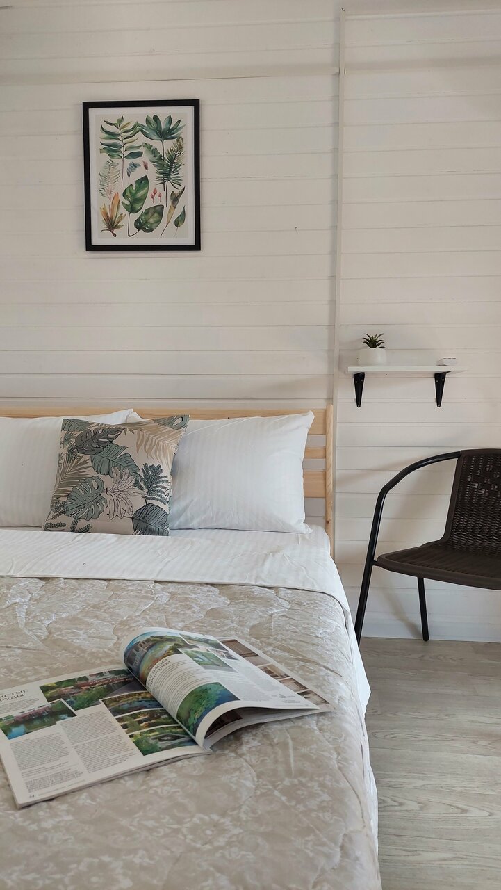Отдельный домик на 4-7 гостей с двумя спальнями, кухней, санузлом и террасой. Ортопедические матрасы, белоснежное постельное белье, гигиенические принадлежности, полотенца, кондиционер, холодильник, микроволновка. Парковка бесплатная.