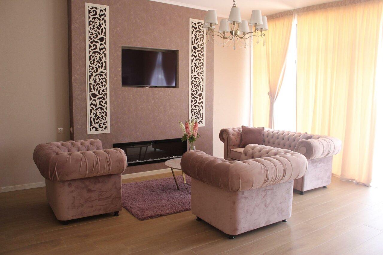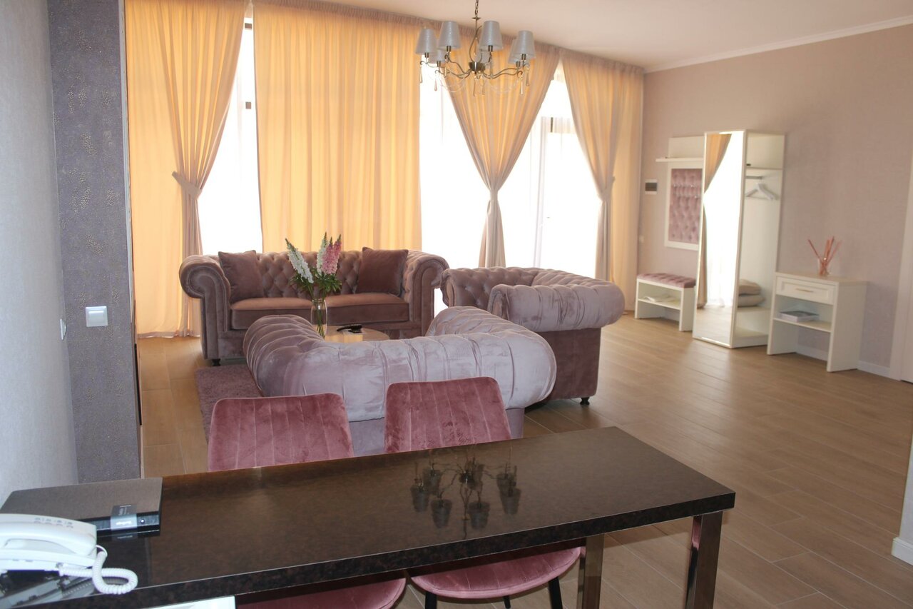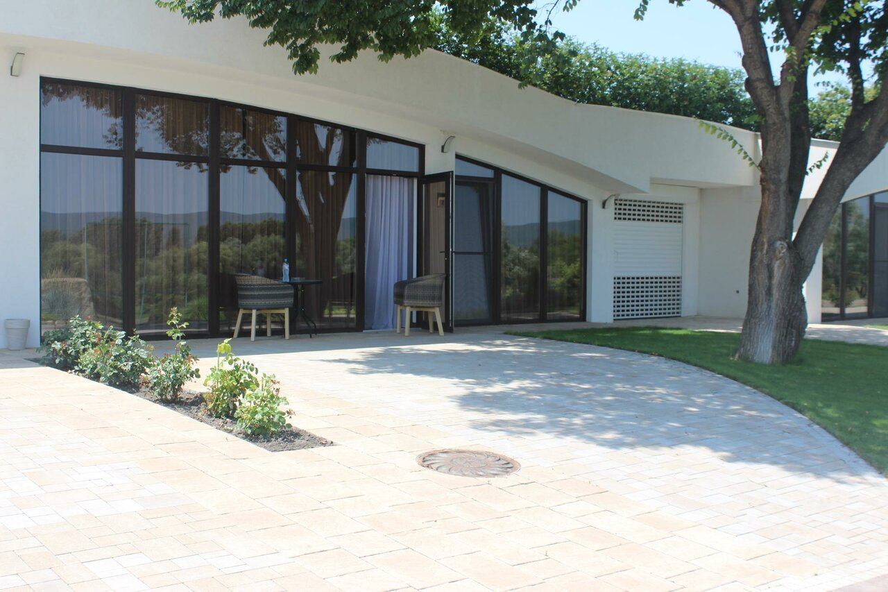 Услуги и удобства: — Номера с кондиционером, звукоизоляцией, кухонным уголком, феном, телевизором, Wi-Fi. — Бесплатная парковка, завтрак, чай/кофе в номерах. — Прачечная, уборка, носильщик, кафе, ресторан, банкетный зал. — Для детей: бесплатные кровати (0–3 года), заселение с детьми. — Досуг: гольф, мини-гольф, теннис, бадминтон, сад, виноградник, летняя веранда. — Дополнительно: камин, халаты, тапочки, посуда, чайник, кофеварка.