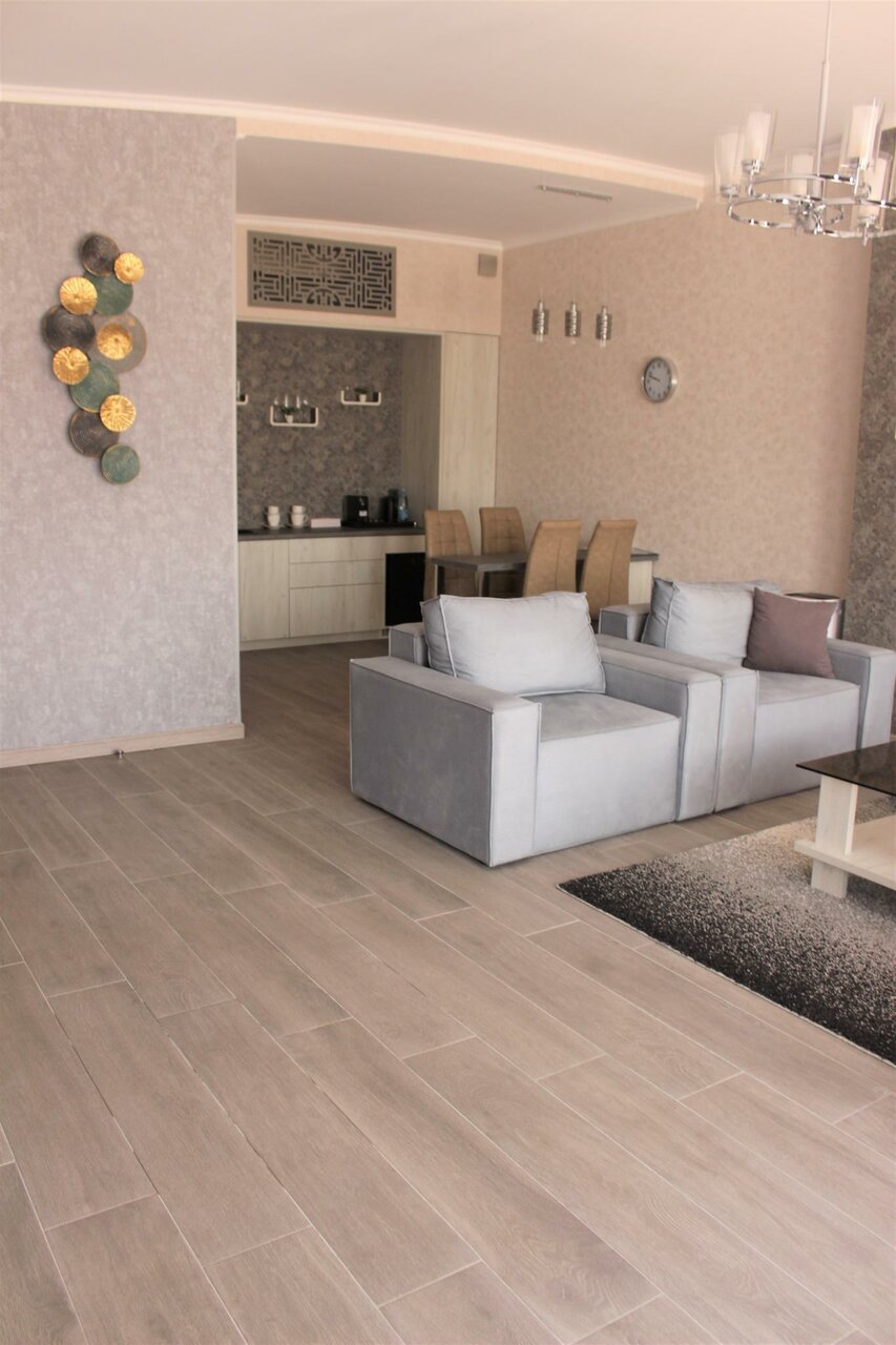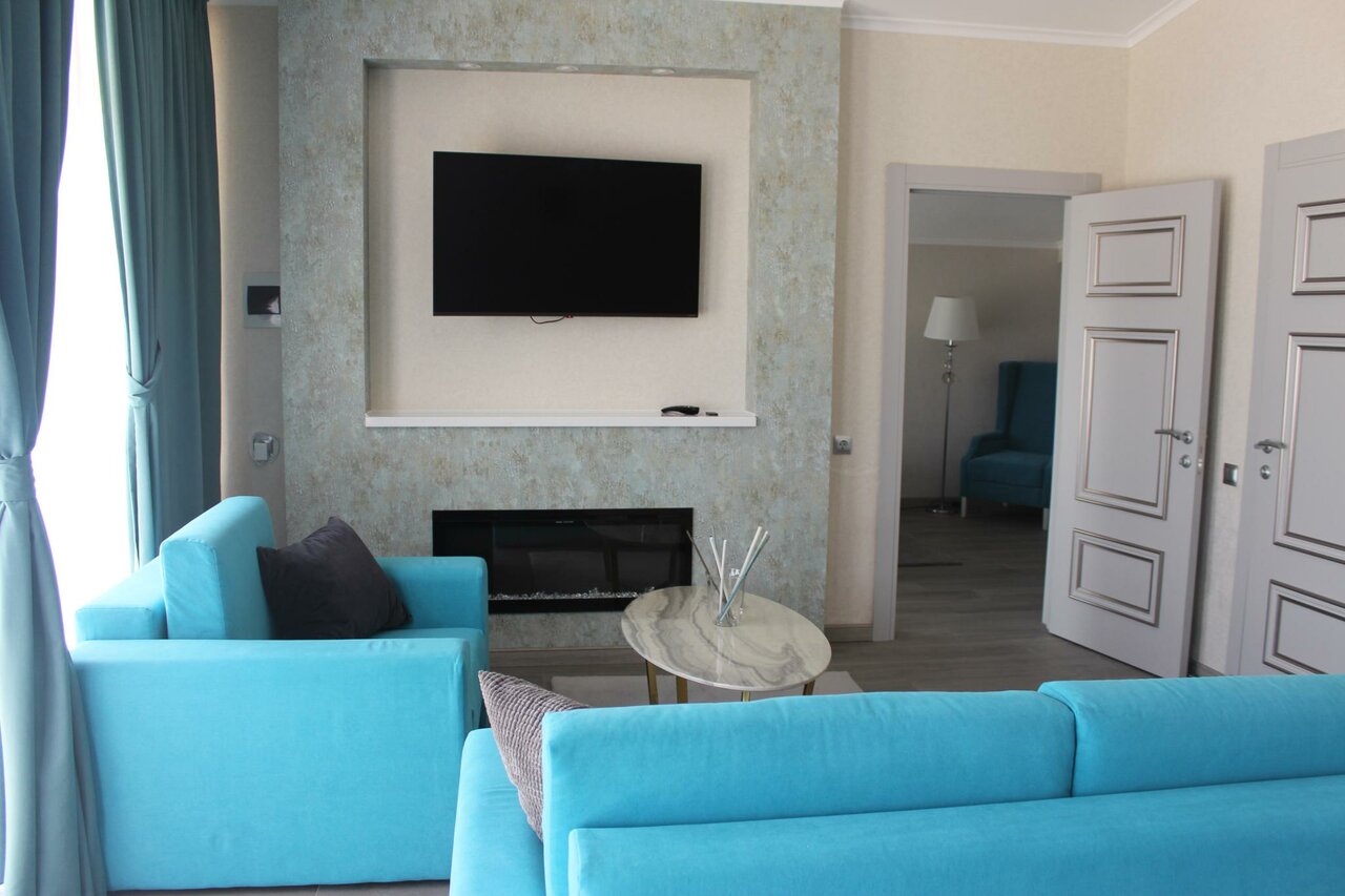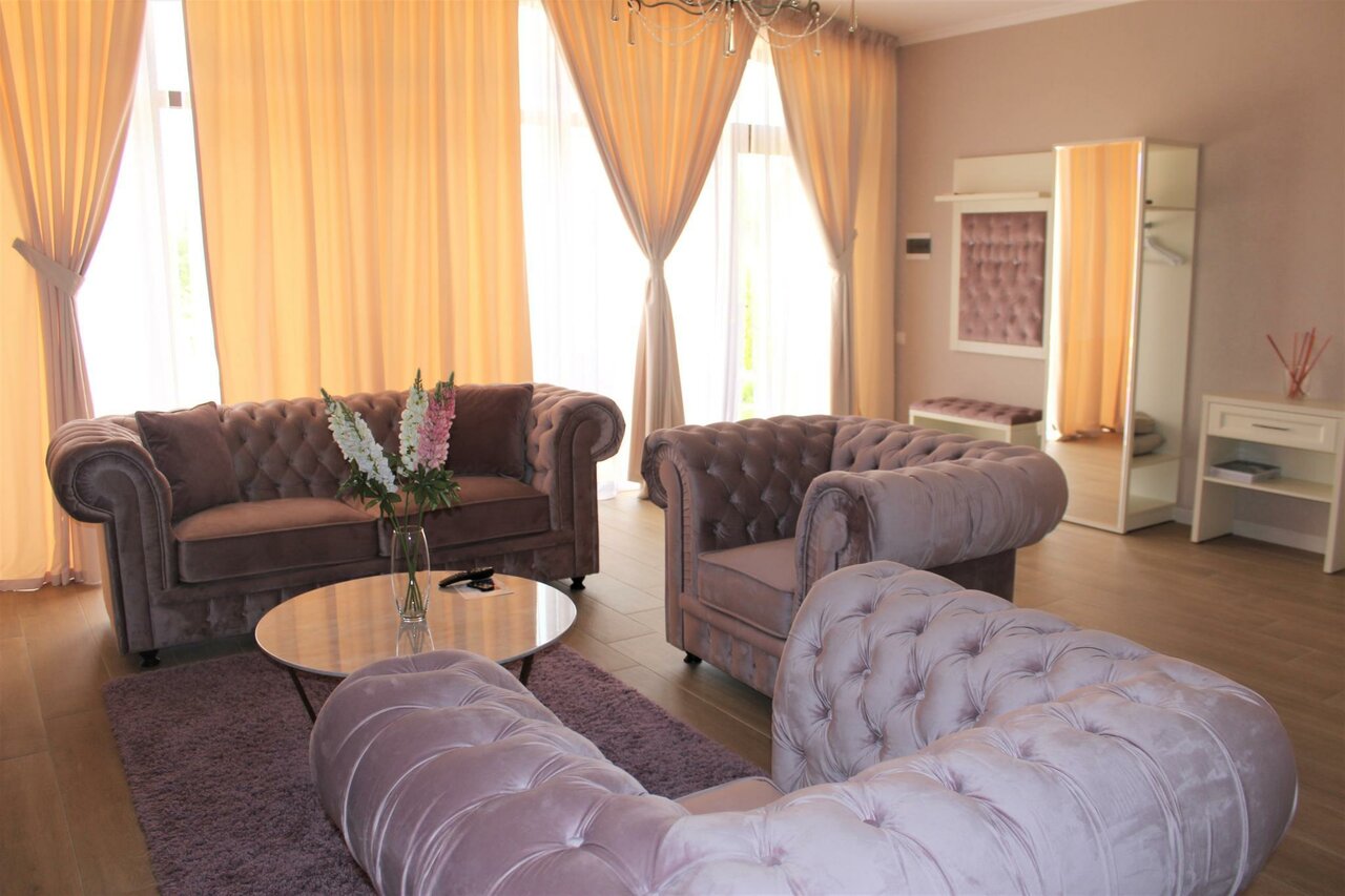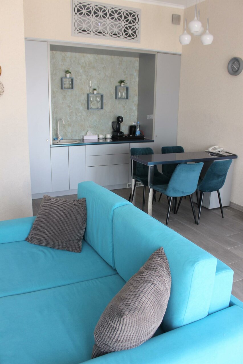 - Полный набор необходимого (полотенца, халаты, тапки, банные принадлежности, чай, кофемашина, минибар).