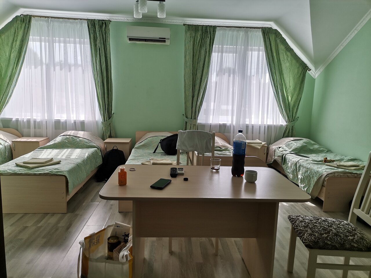 Остановились в данном отеле 5 августа 2022 г. Номер предложили 6-местный, нам необходимо было только 3 места, заплатили 2 тыс.руб. В номере очень чисто, постельное чистое, в номере телевизор, кондиционер, холодильник, чайник, кружки. Есть стоянка огороженная, во дворе чистота и куча роз цветет. Администратор приветливая, все рассказала и показала. Если будем мимо проезжать, обязательно еще там остановимся. Однозначно рекомендую!