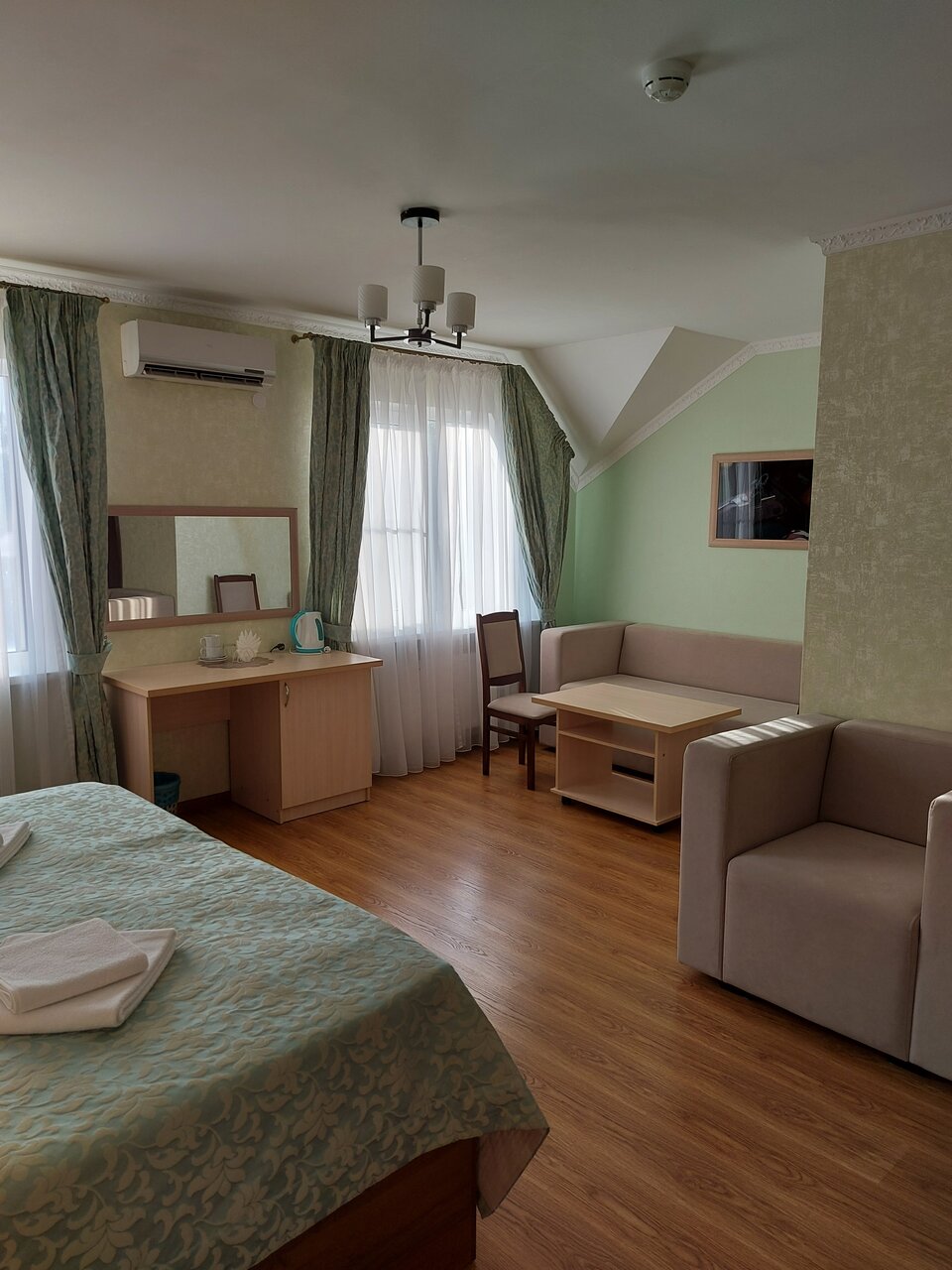 Отличное место, номер со всеми удобствами, даже холодильник есть. Недалеко от трассы, можно устроиться на ночлег, если едете на море на машине. И стоимость,как во всех других гостиницах, но номер классом выше.